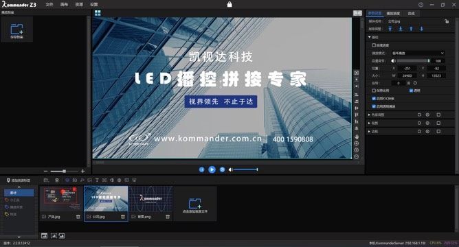 Kommander Z3免狗版是一款专为LED显示屏设计的强大播控软件,能够流畅播放视频、音频、图片、Office文档以及流媒体等多种类型的媒体文件。