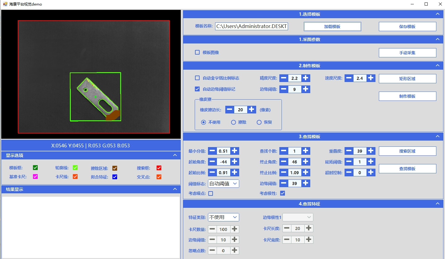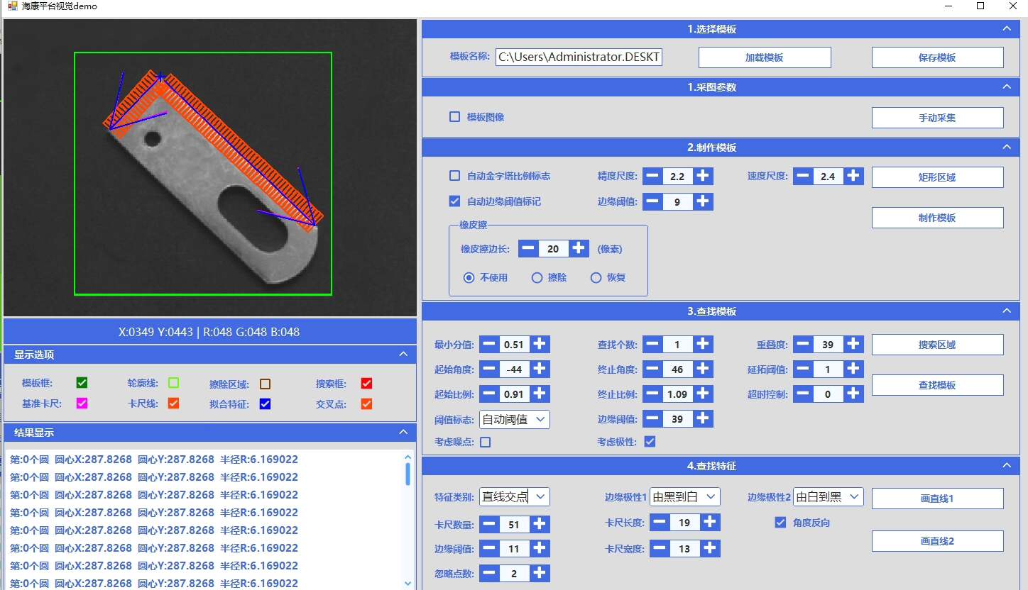 本Demo软件全程通过调用海康VisionMaster提供的标准算子实现所有功能,不依赖可视化控件流程,提升程序可移植性与执行效率。