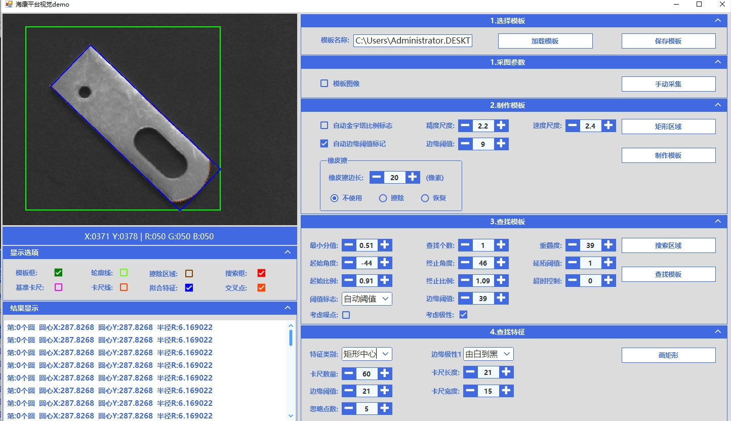 其中矩形检测为深度二次开发,仿照Halcon思路实现,提升定位鲁棒性。