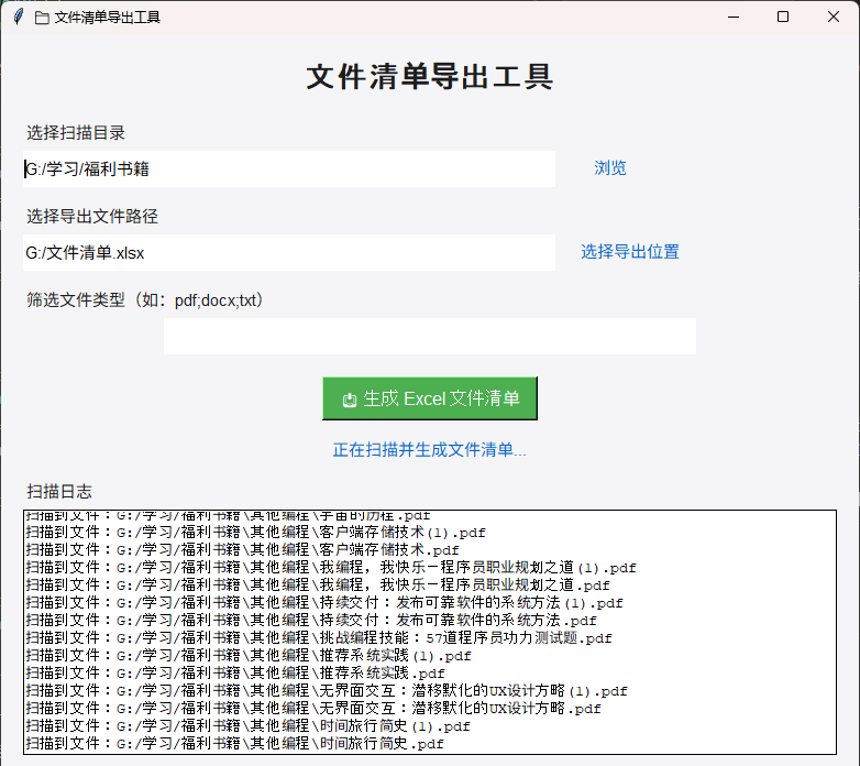 现在,只需一款智能工具,即可自动扫描指定文件夹及其所有子目录,一键生成结构清晰、信息完整的文件清单,并直接导出为Excel表格,大幅提升文件归档与管理效率。