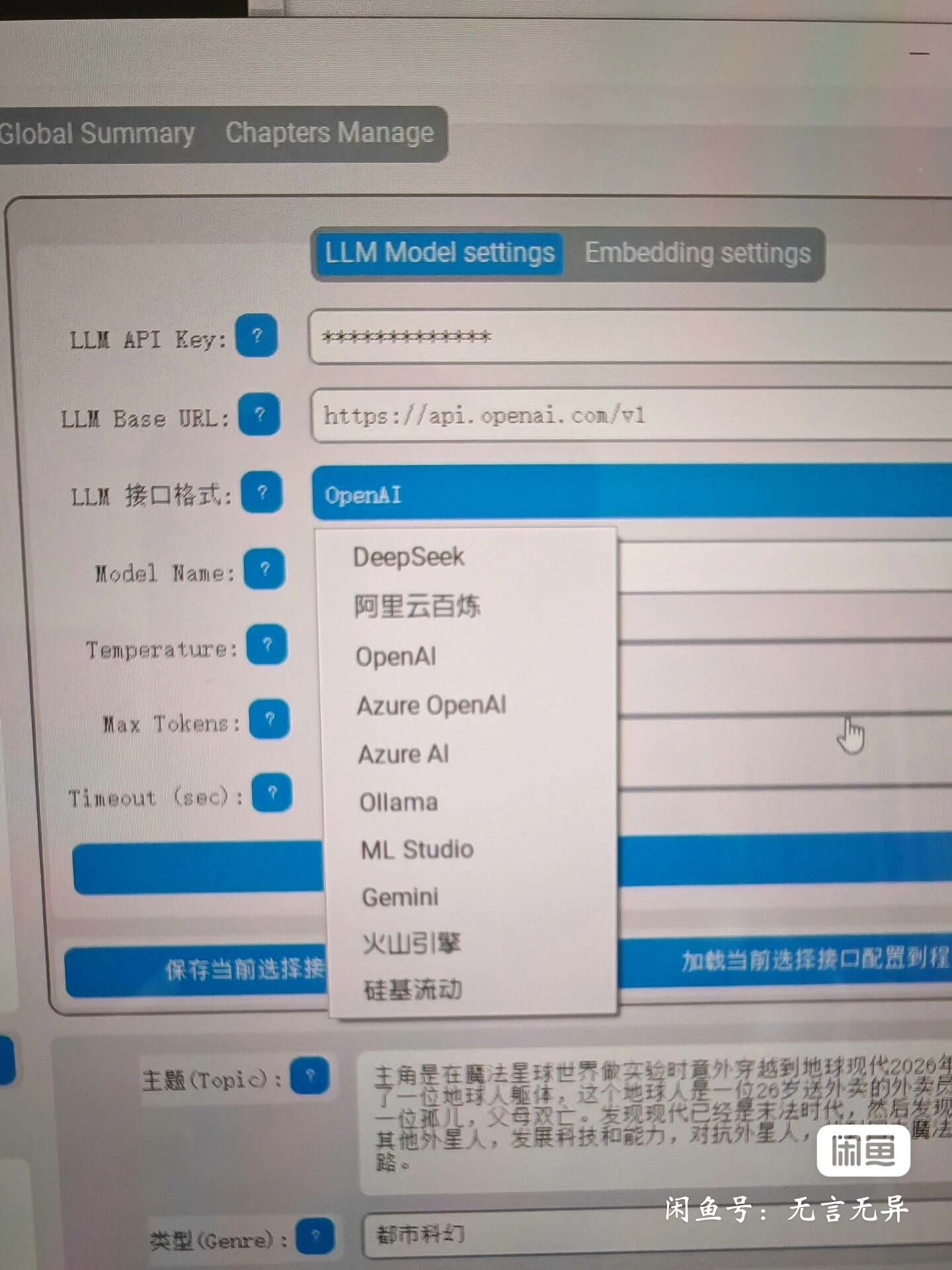 在此步骤中,您需要完成基本设置,比如选择合适的语言模型、嵌入式引擎以及定义书籍的基本属性(例如主题、风格、预计长度等)。