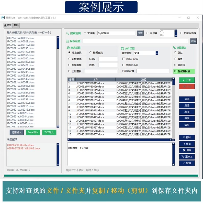 设想一下,面对着上万个杂乱无章命名的文件和文件夹时,如何快速筛选出特定的500个并将它们迁移到新的存储空间?这就是本软件能够完美解决的问题。