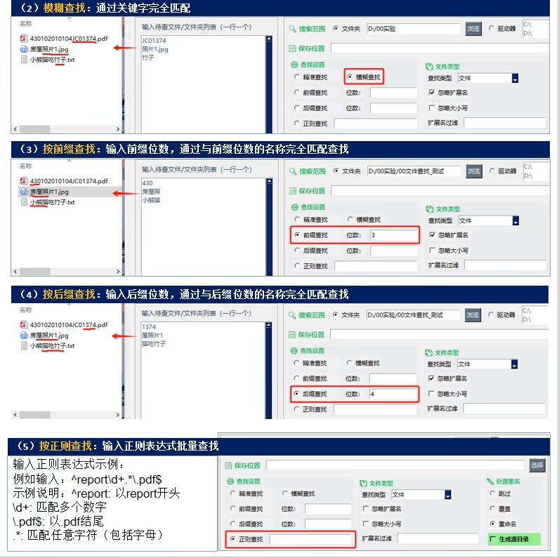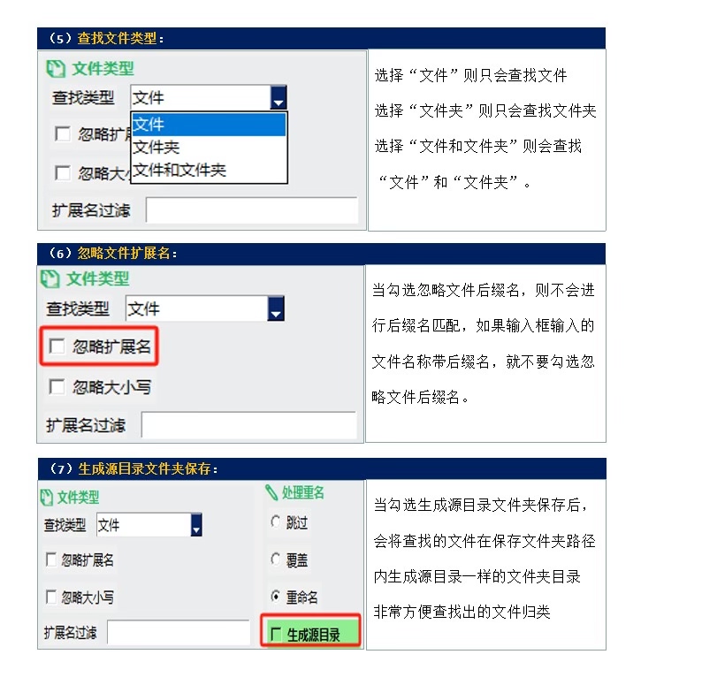 允许指定一种或多种类型的文件作为查找目标,满足多样化场景应用。