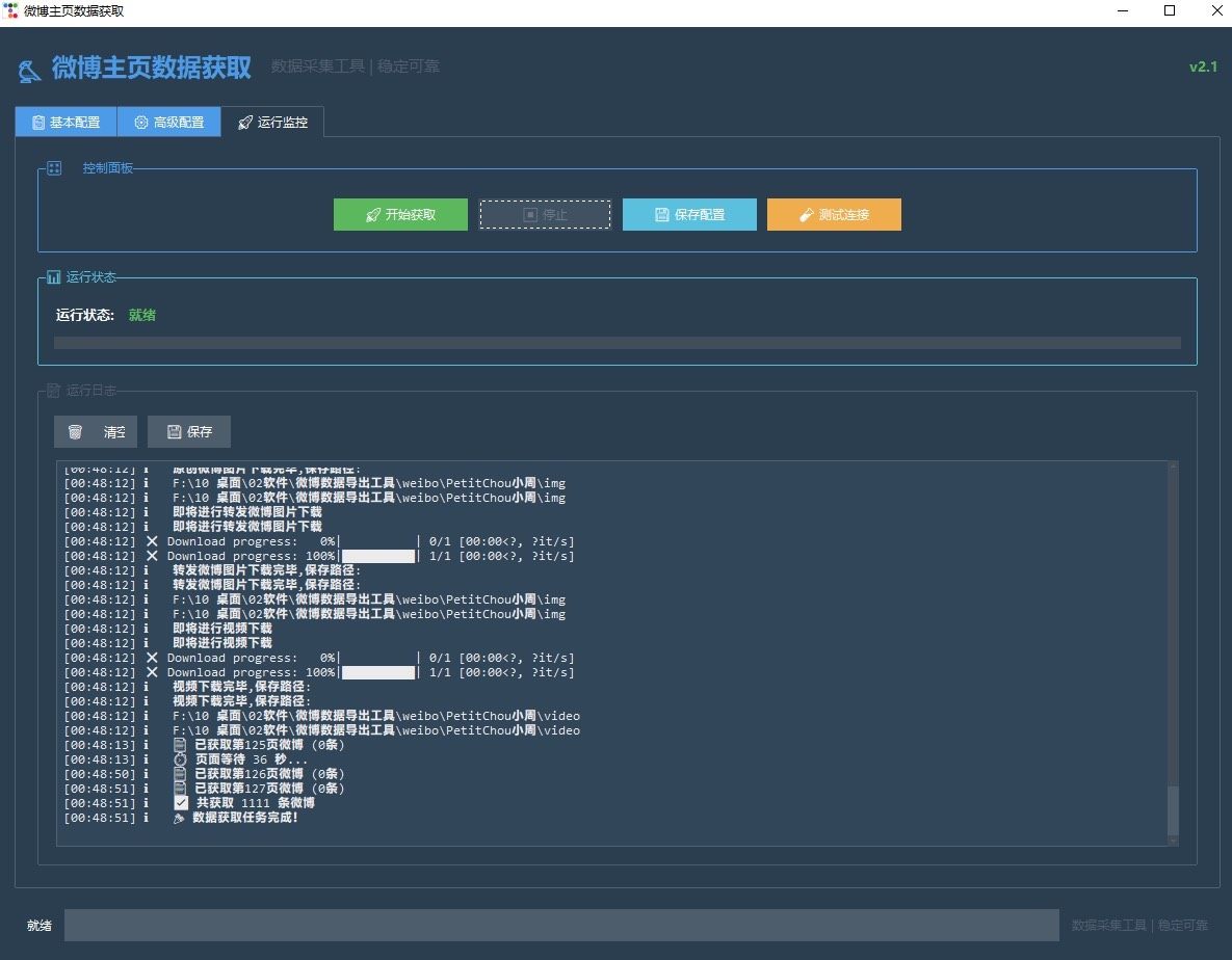 ## 微博数据抓取工具,批量导出文本图片视频