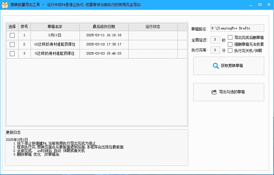 [特别推荐]是否还在为如何高效地从剪映中导出草稿而感到困扰?手动处理既耗时又费力?别再烦恼了!今天我要向大家介绍一个超级实用的工具——“剪映自动批量导出助手”,它将彻底改变你的工作方式,让你的操作更加流畅,效率大幅提升。