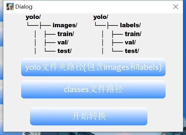 提供了六种具体的转换路径供选择,包括但不限于从YOLO到VOC、从YOLO到COCO、从VOC到COCO等。
