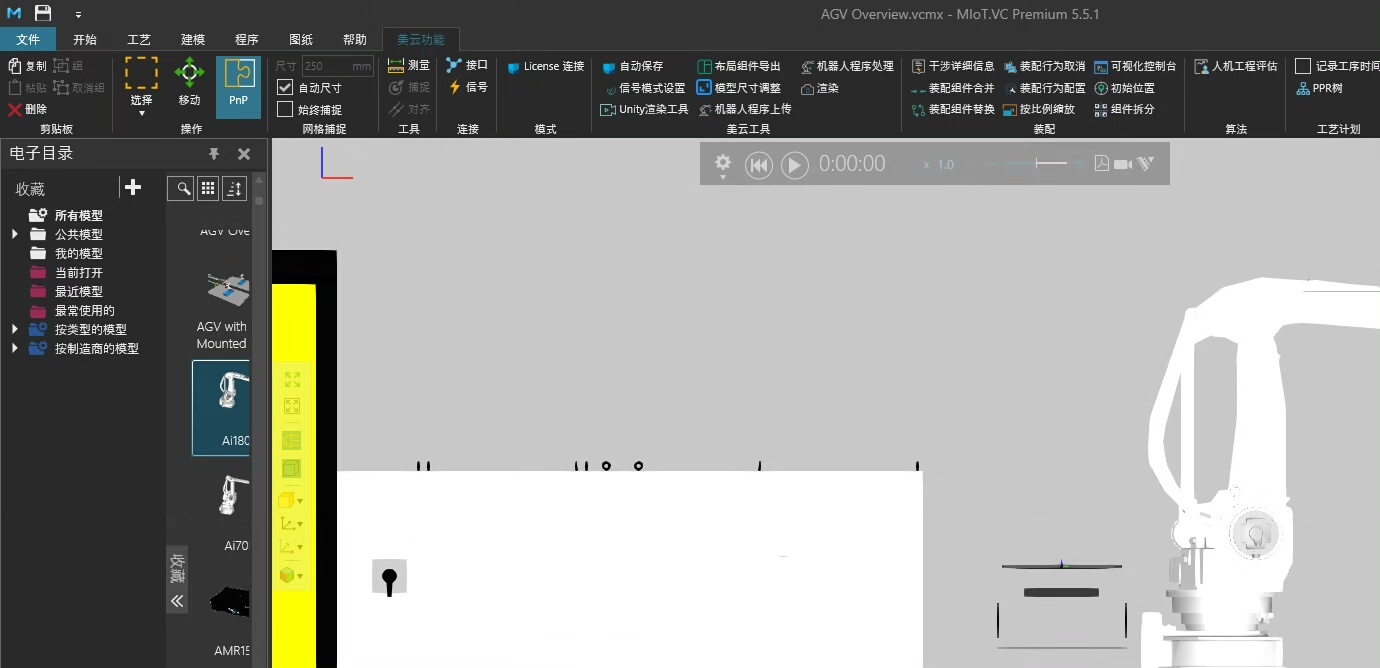 美擎仿真软件5.5.1版本,通过Mito.Vc提供了一个集成了包括但不限于3D工业仿真、装配过程模拟、人机合作优化、物流流程再现以及机器人操作预演等功能的强大数字化工业仿真环境。
