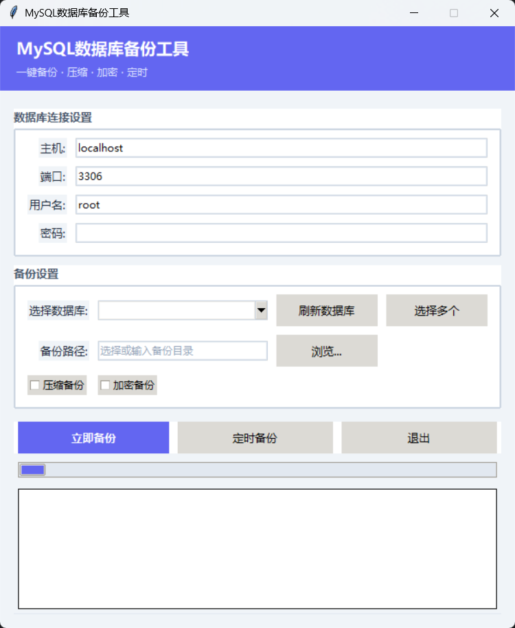 | 灵活备份模式 | 支持单个或批量数据库备份,自定义存储路径 |