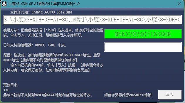 ## 小度X8 XDH-0F-A1 EMMC版SN修改工具V1.0