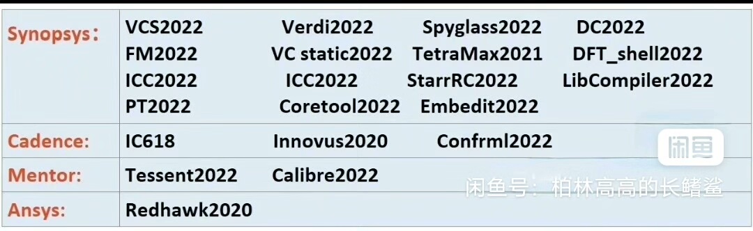包含了最新的Synopsys、Cadence以及Mentor Graphics 2022年的EDA软件包,覆盖从前期规划到后期实现的完整流程。