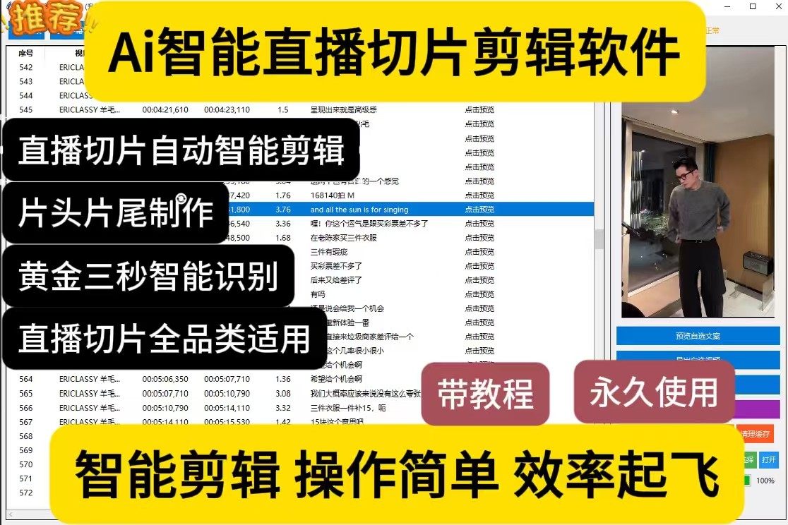 ### 智能AI女装直播剪辑软件授权转让 电商主播高效工具 含安装指南
