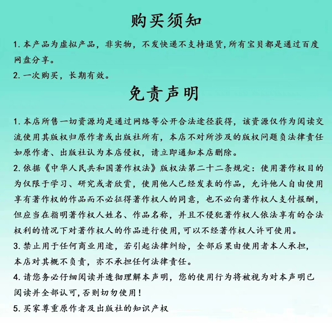 - **虚拟商品特性**:鉴于虚拟产品的特殊性质,在后除非存在质量问题否则不接受任何形式的理由退货,请谨慎考虑后再做决定。