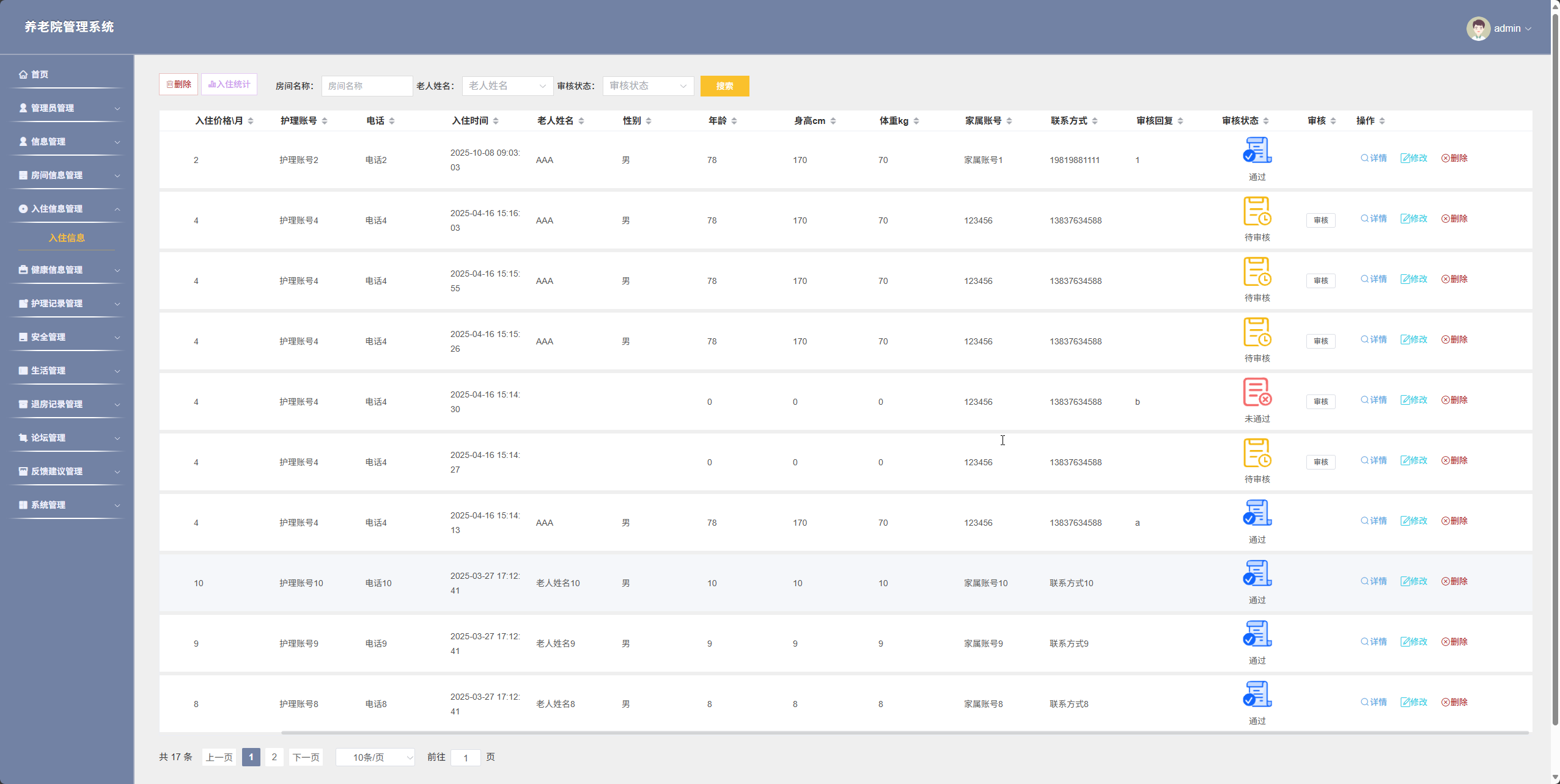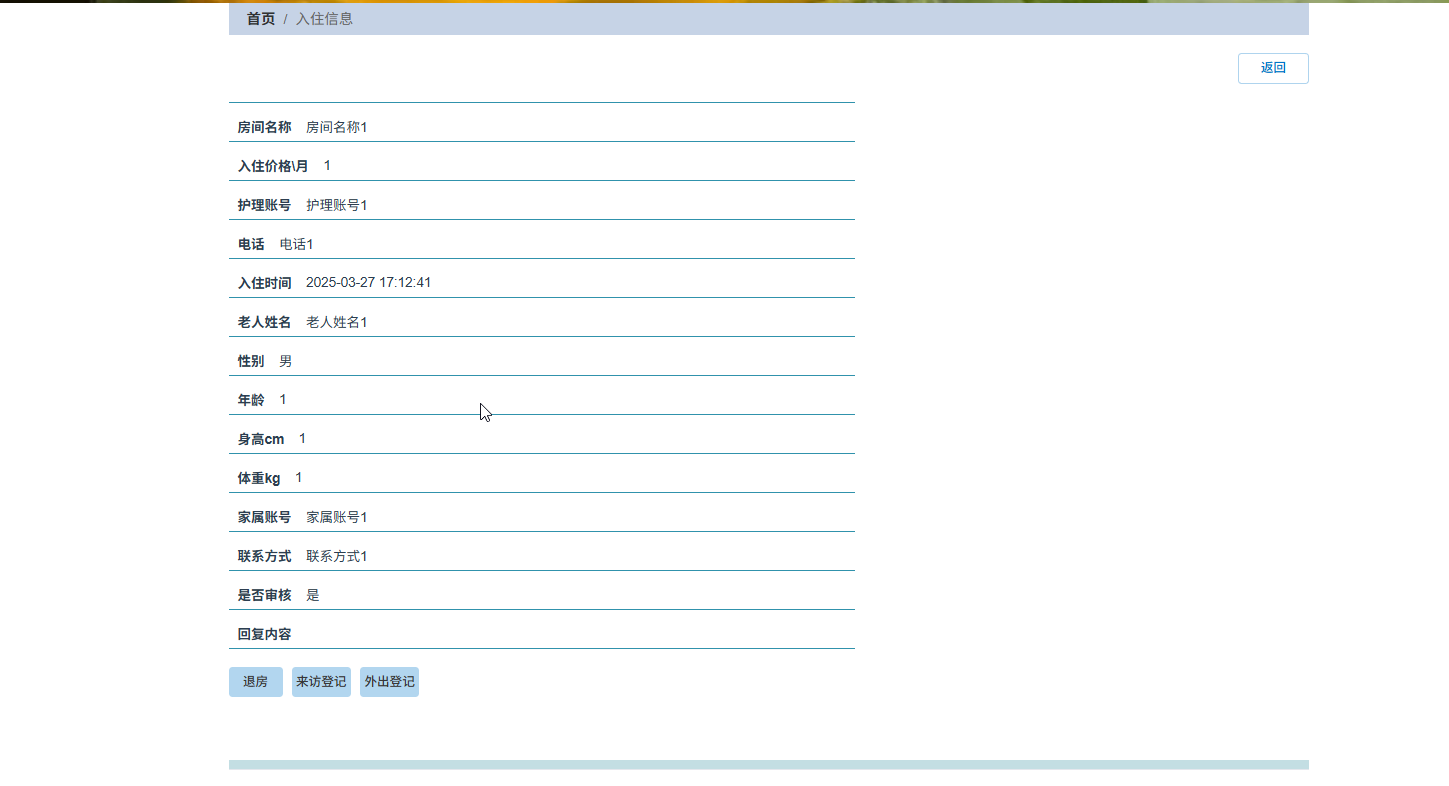 比如,管理员可以查看整个机构的所有入住和来访记录;而护理人员则只能访问到自己负责区域的数据。
