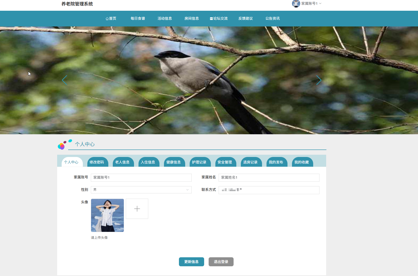 - **家属**:可通过平台查看老人的生活情况,参与社区互动,提交反馈意见等。