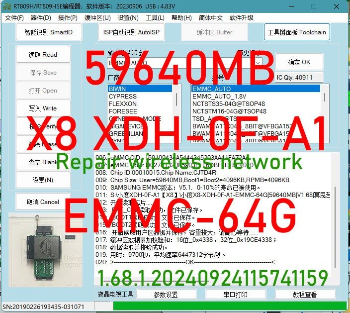## 【WIFI修复】小度X8 XDH-0F-A1 64G EMMC内存扩容资料程序