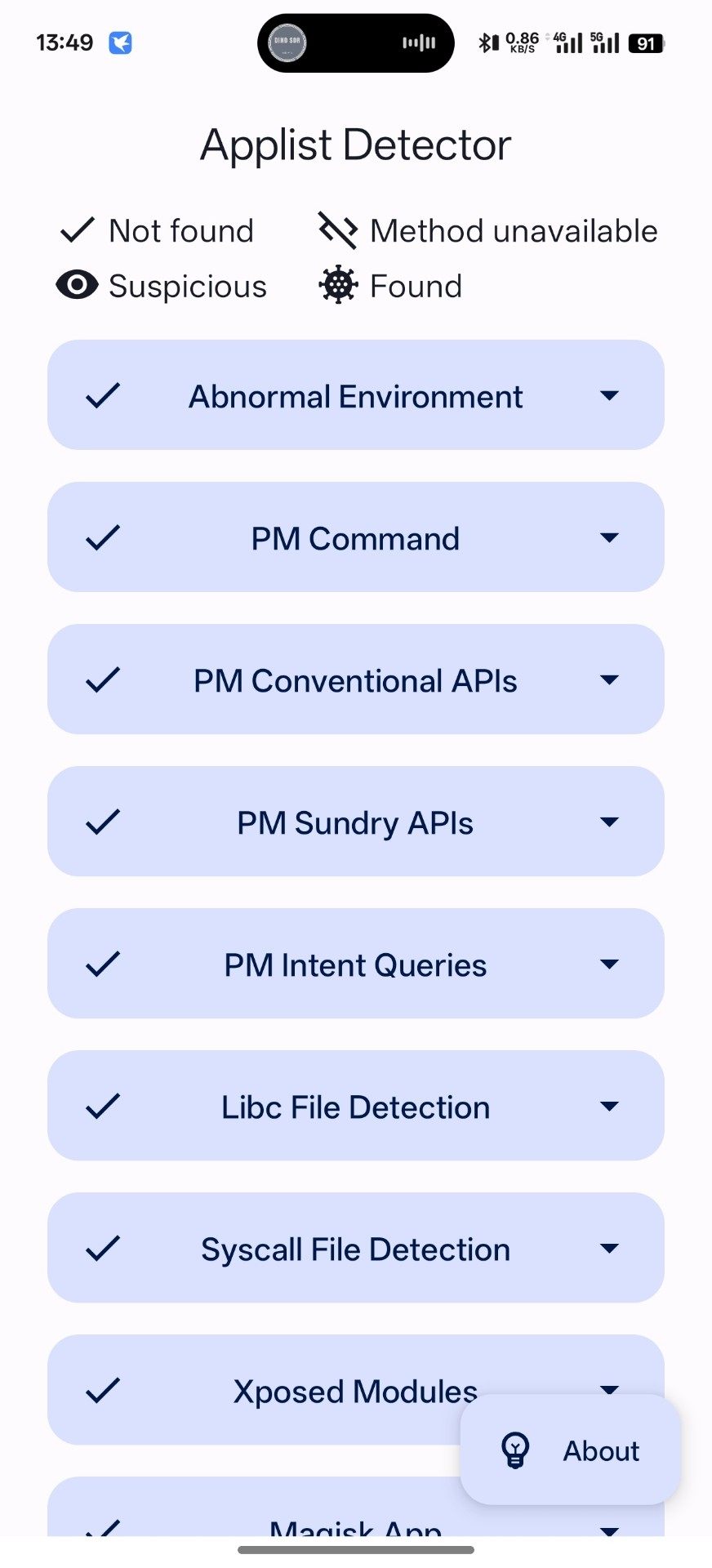 我们的兼容momo、ruru、Appplist Detector、放大镜、密钥认证、应用列表检测器等多种检测工具,确保您的设备在任何情况下都能保持安全。
