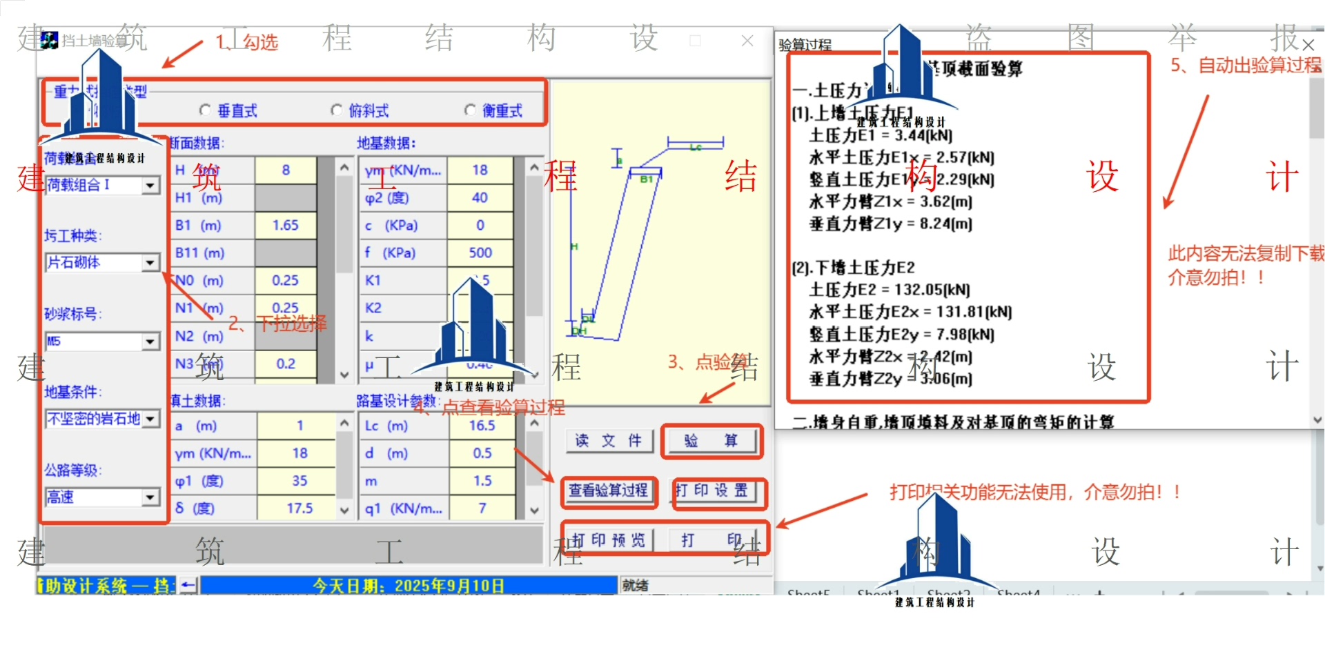 本程序是一款专为工程设计人员打造的免安装重力式挡土墙计算验算工具,操作便捷,无需复杂配置,打开即可使用,适用于各类重力挡土墙的设计与稳定性校核。
