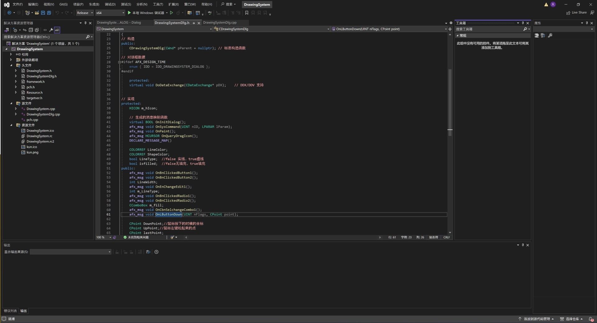 这个基于C++ MFC开发的绘图工具不仅能够绘制直线、虚线、椭圆、长方形等基本图形,还支持自由绘画模式。