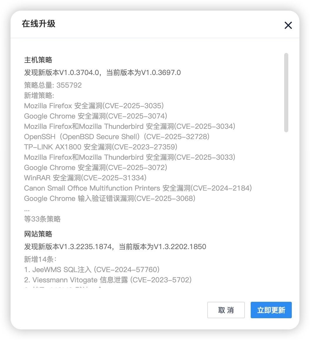 基于最新的威胁情报构建了全新的规则库,帮助用户发现并修复潜在的安全隐患。
