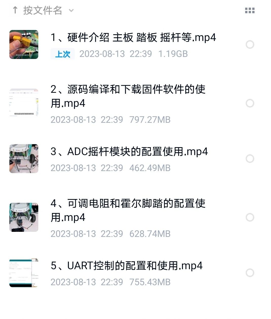 - **视频教程系列**:覆盖了从基础的固件安装到高级的源代码编译全过程的教学视频,同时还介绍了如何使用踏板、遥控器ADC接口等外设硬件。