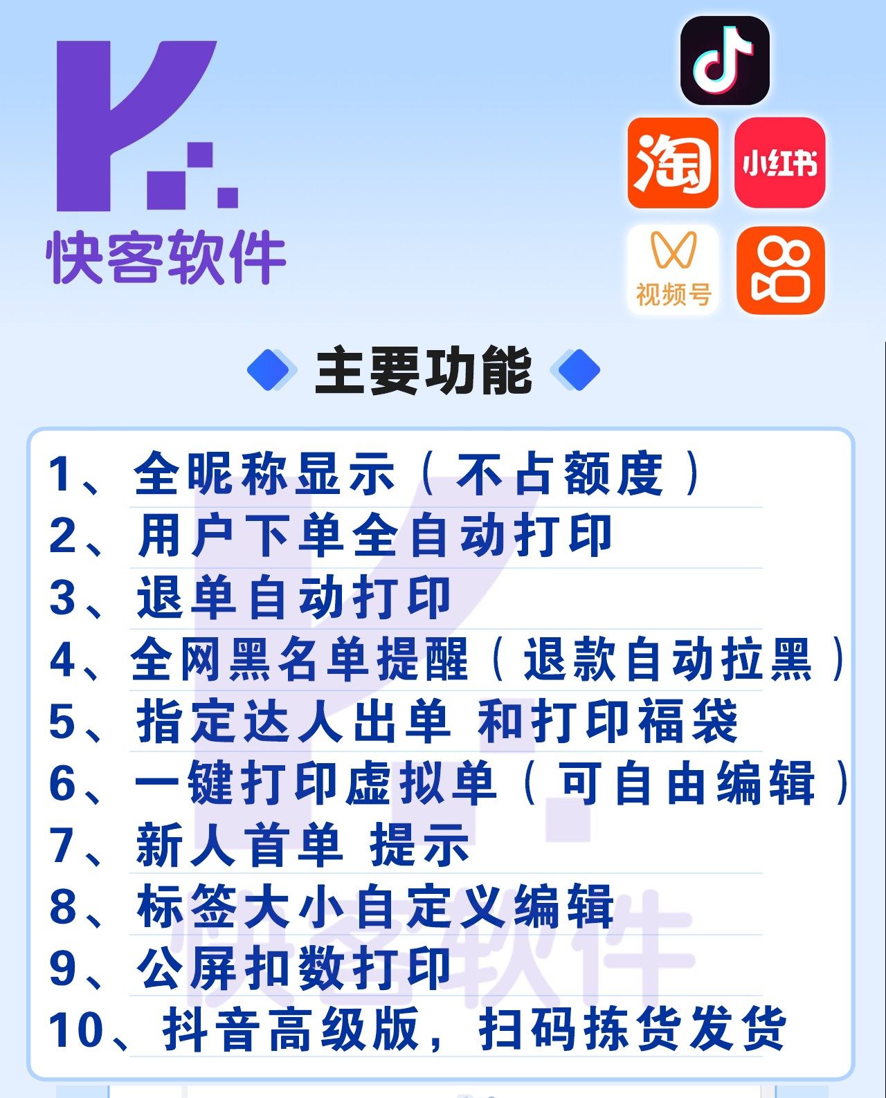 适用于抖音、小红书、淘宝、视频号以及快手等多个主流电商平台的快客直播间自动扣数打单软件,为商家提供了一站式的订单处理服务。