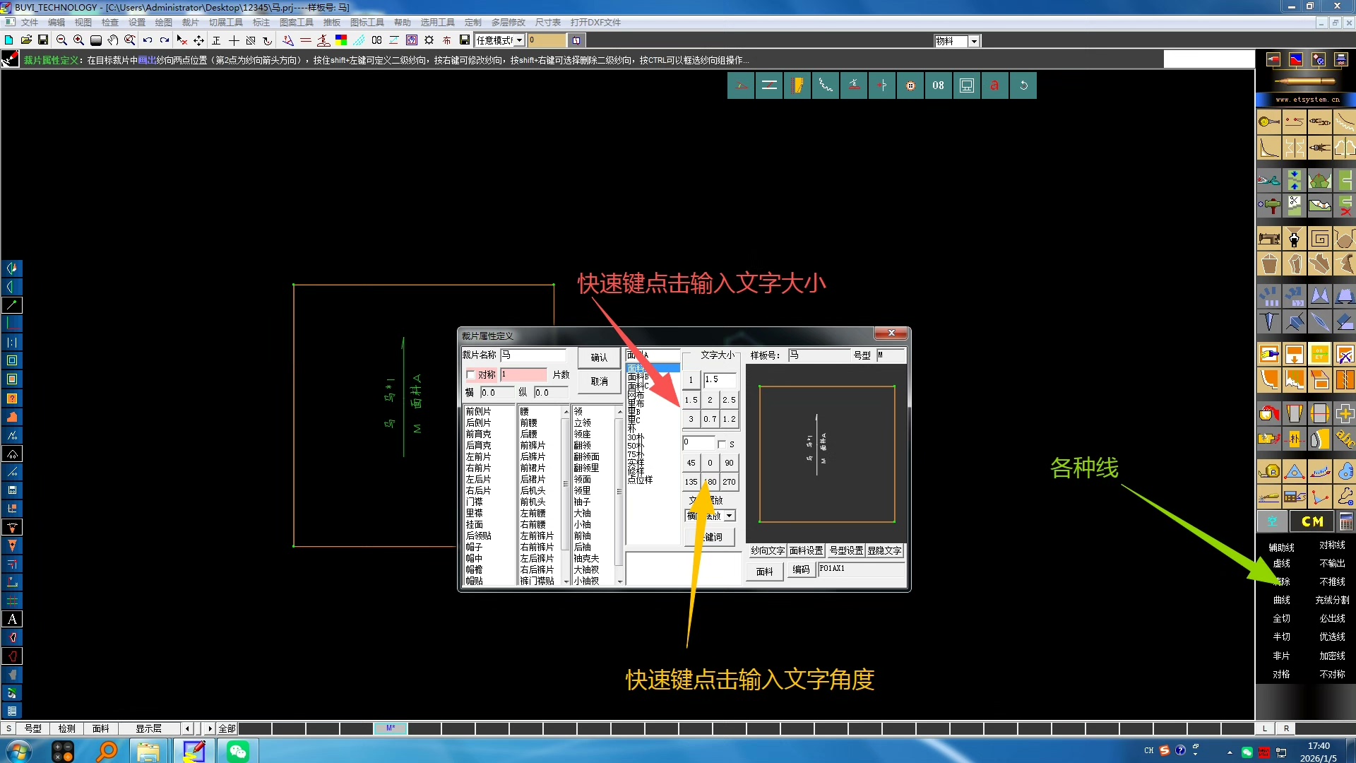 通过快捷键即可迅速更改裁片上的文字大小及角度等属性。