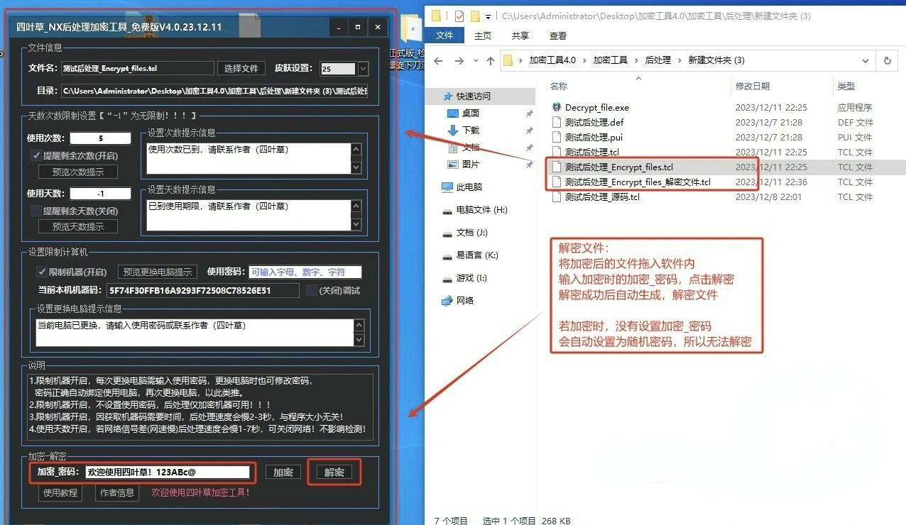 该工具不仅能够对后处理文件进行加密操作,还支持解密已加密的文件。