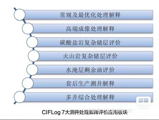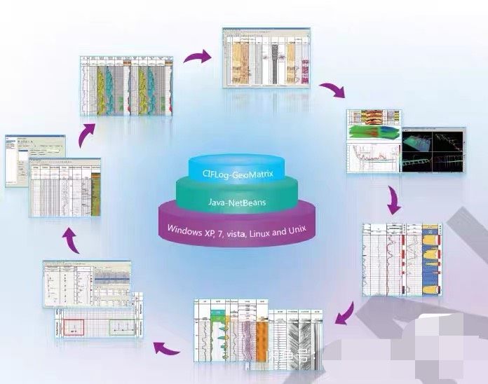 CIFLog 支持完善的数据格式转换、数据管理、资源管理、测井资料预处理、成析绘图、数据处理、应用开发和集成、多个井预处理、多个井地层对比、多个井处理、参数等值预测、工区三维显示、一体化一起显示井和震等工具和评价模块。