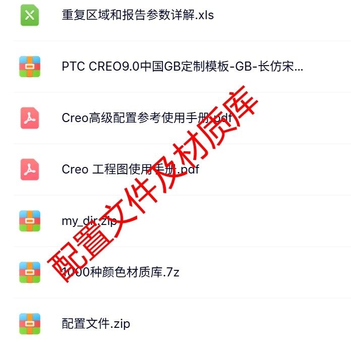 专为Creo软件用户设计的配置文件集合,内含广泛使用的设置文档、打印格式设定、图标集以及图表资源等。
