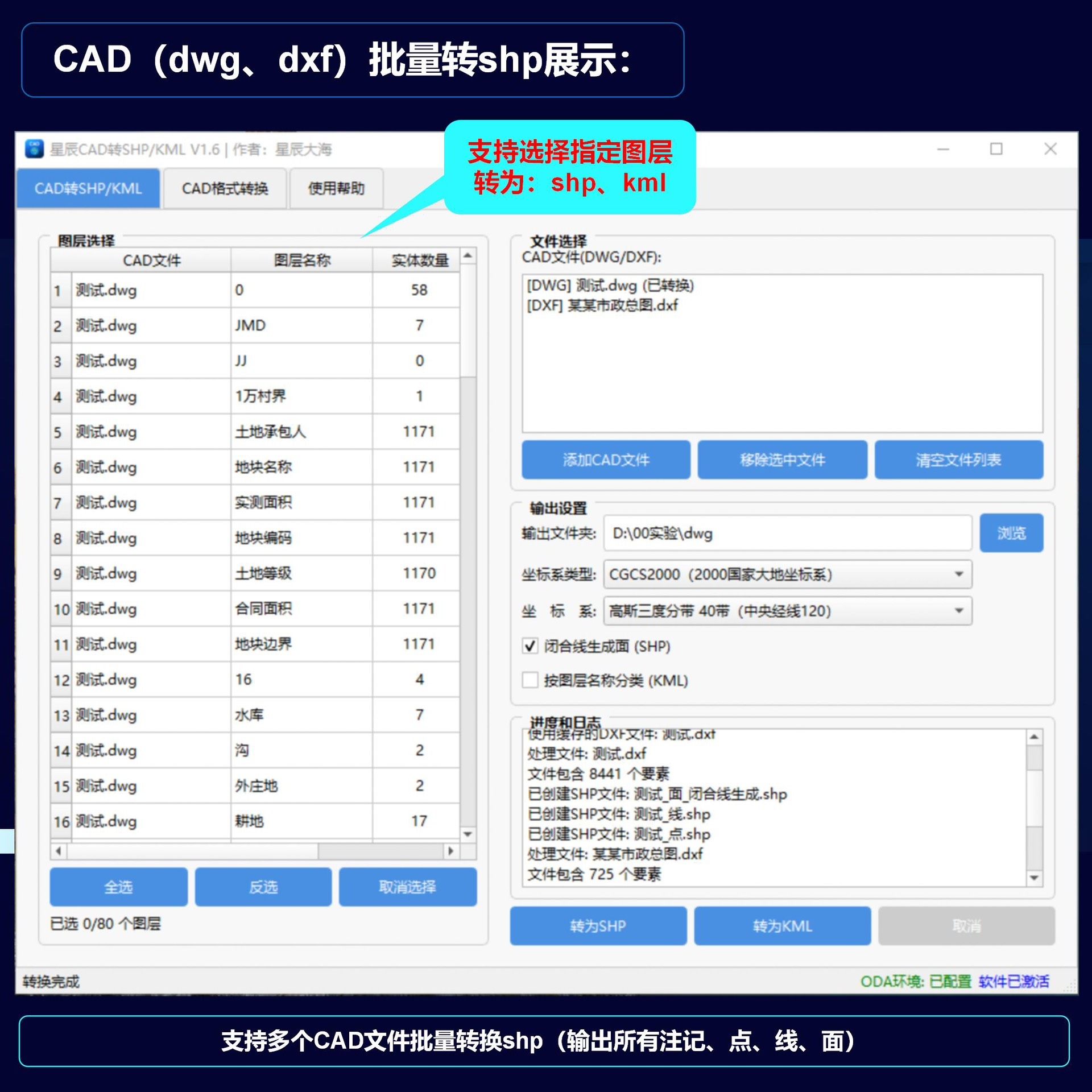 这款先进的转换工具旨在简化您的工作流程,使您能够快速准确地将大量CAD文件转换为GIS常用的SHP或KML格式。
