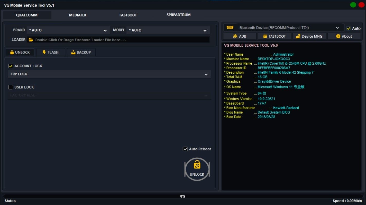 该工具为开发软件,兼容性强,支持包括Qualcomm、MediaTek、SpreadTrum以及Fastboot协议在内的多种芯片平台设备,是技术人员进行深度维护的理想选择。