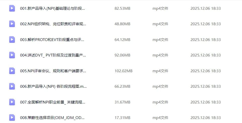 本套电子资料包含了对新产品导入(NPI)整个流程的详细解读,涵盖了从概念设计到市场投放的所有关键步骤。