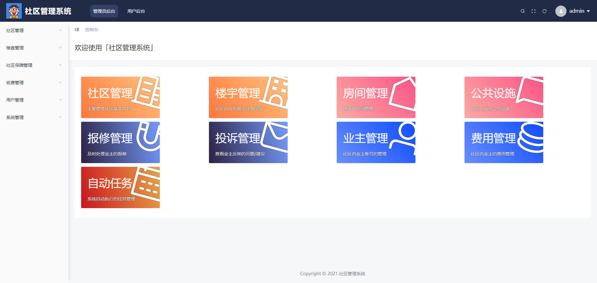本资源为一套基于SpringBoot + Vue技术栈开发的现代化小区物业管理系统,适用于学习、毕设或二次开发。