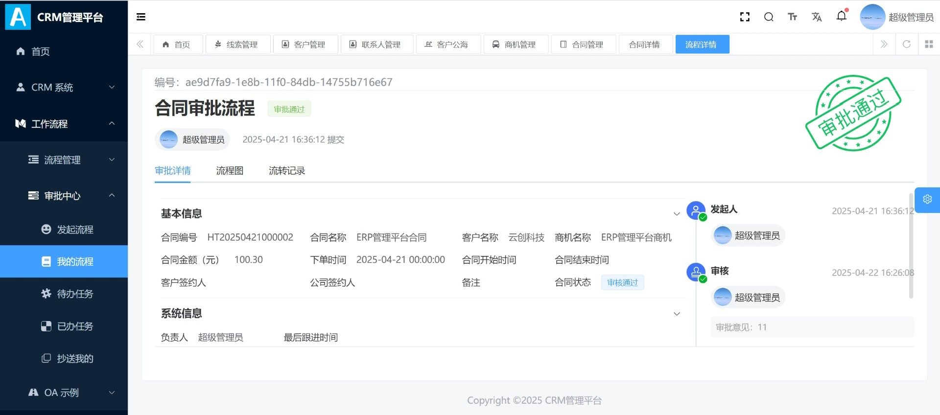 系统预留流程引擎接口,可快速集成BPM模块,实现审批流、任务流转等自动化办公功能,助力企业构建一体化业务流程管理平台。