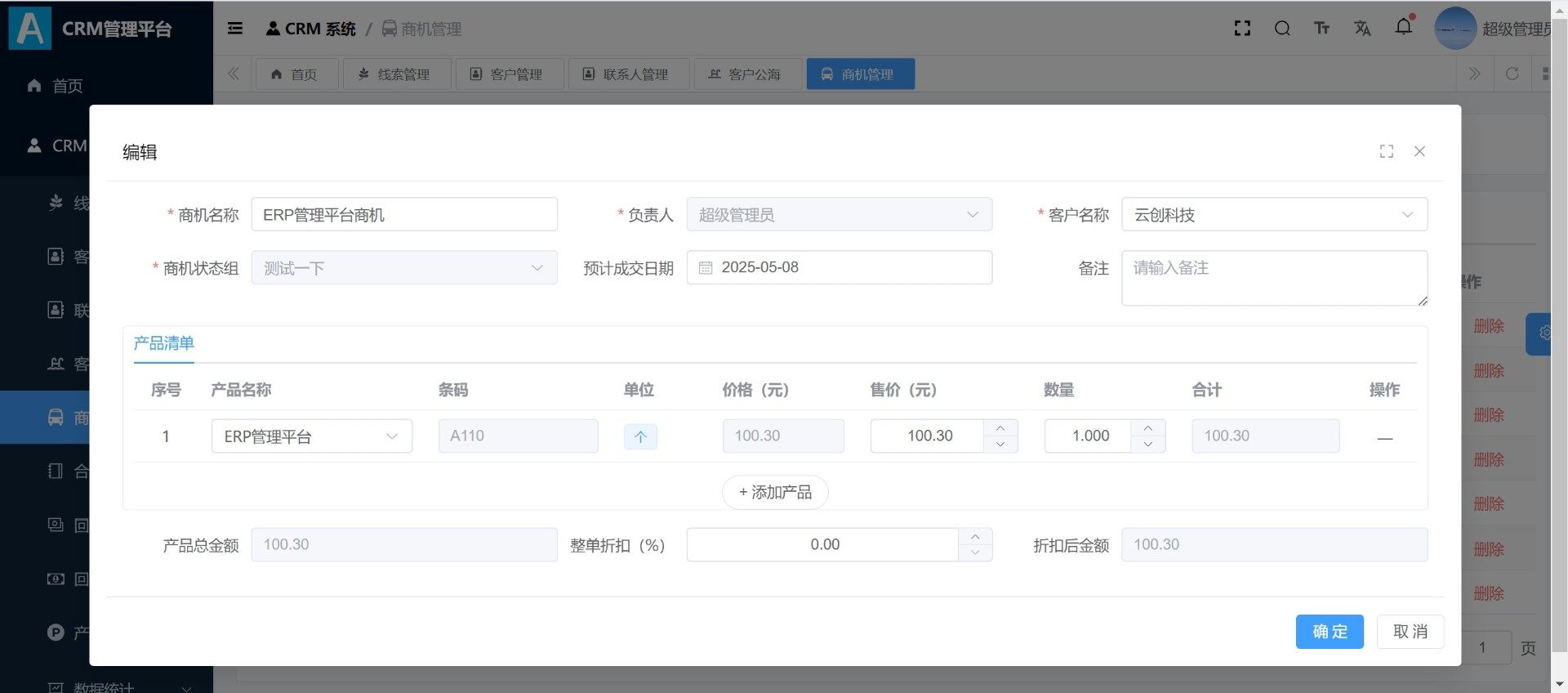 系统内置完善的配置中心,支持客户公海规则、客户分配限制、产品分类、商机状态等自定义设置。