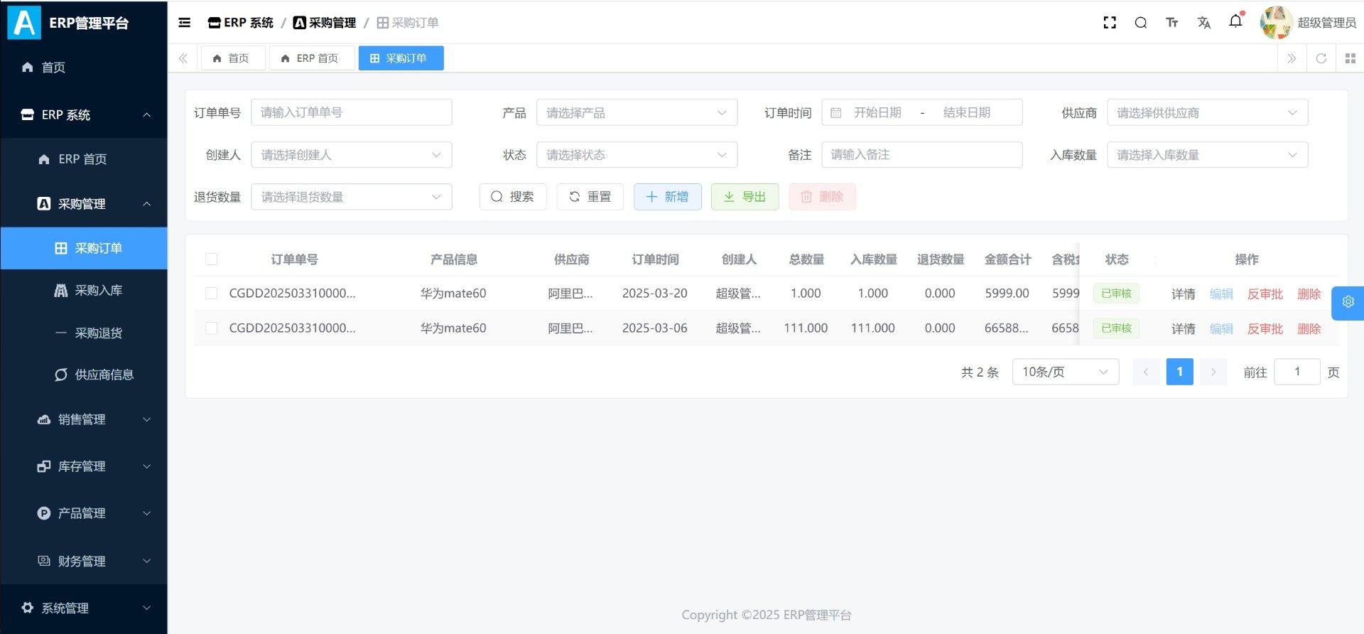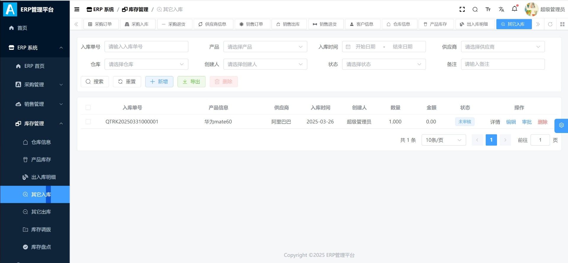 本系统为基于Java与Vue技术栈打造的企业级ERP管理平台源码,适用于中小型企业的数字化转型需求。