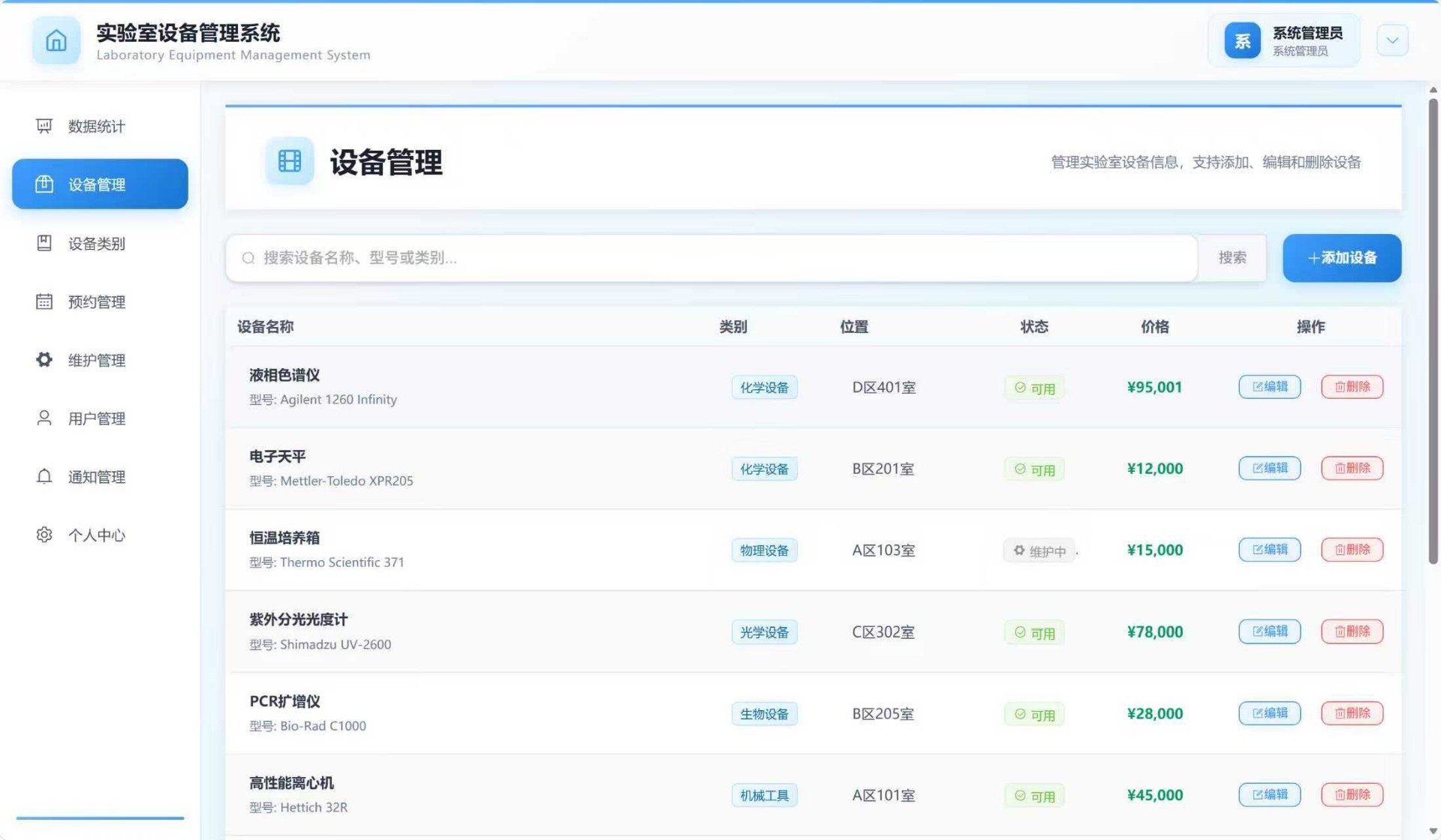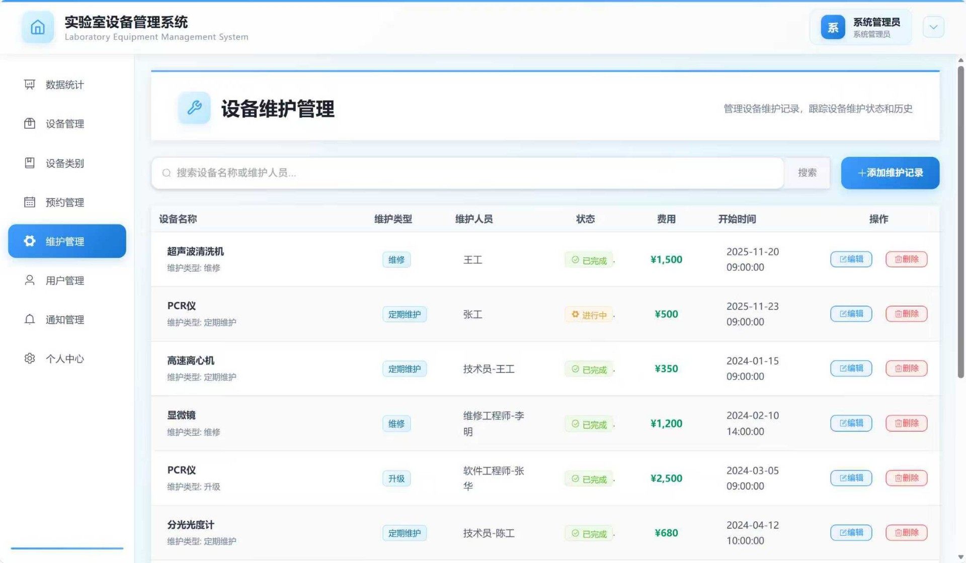 系统通过数字化手段实现设备预约、状态监控、维护记录和用户权限控制的一体化管理。