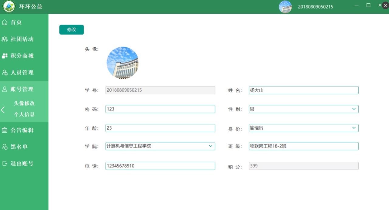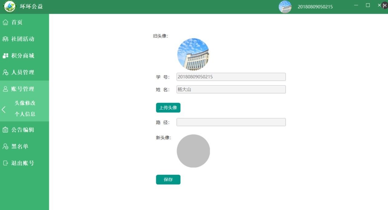 用户可点击头像进入“头像修改”界面更换个人图像,也可在“个人信息”中更新联系方式等基本资料。