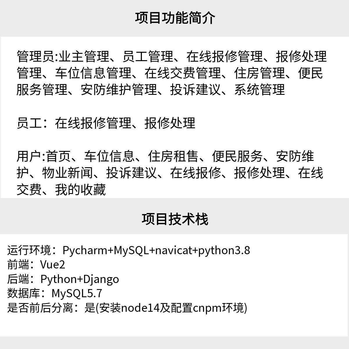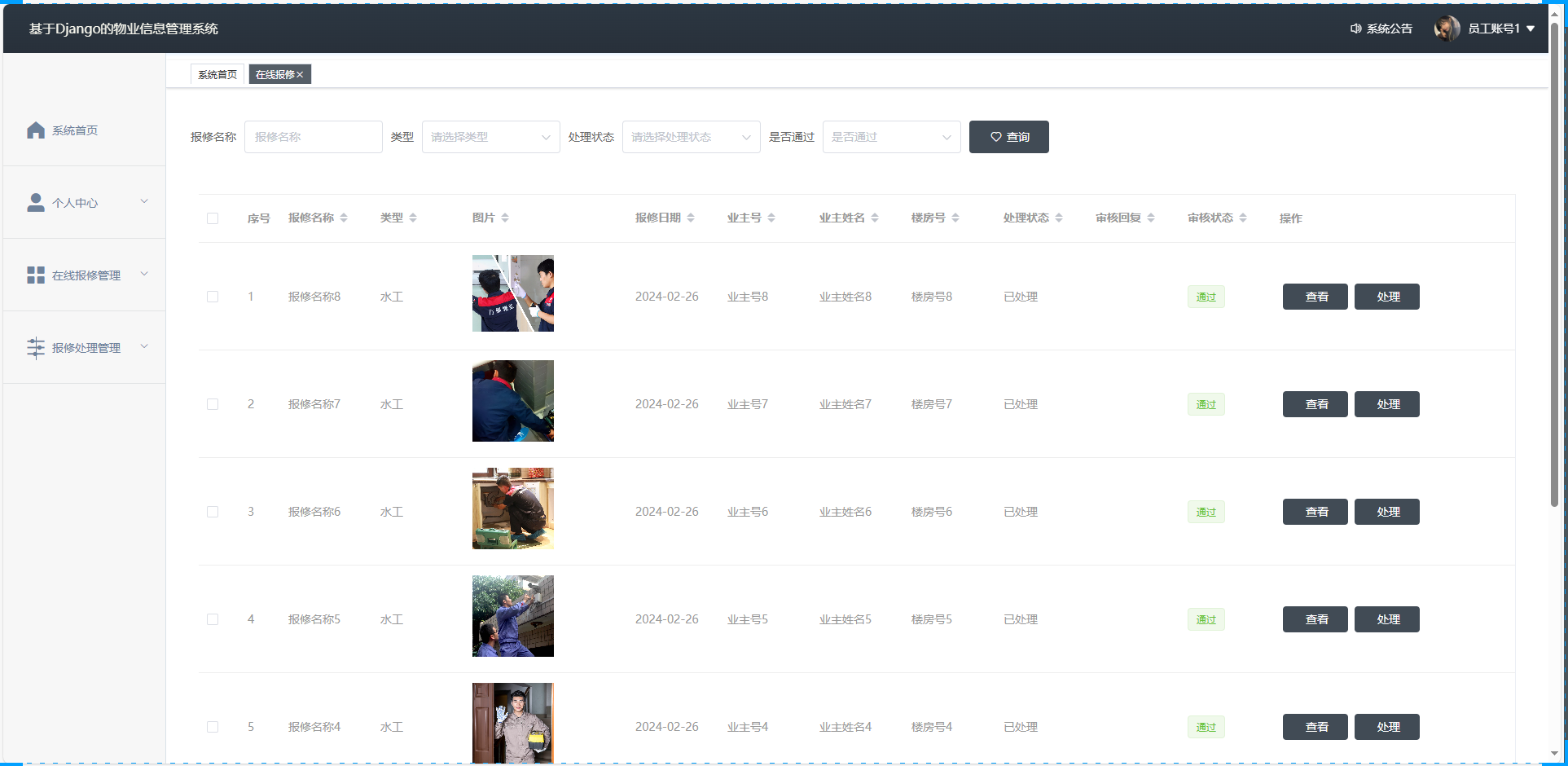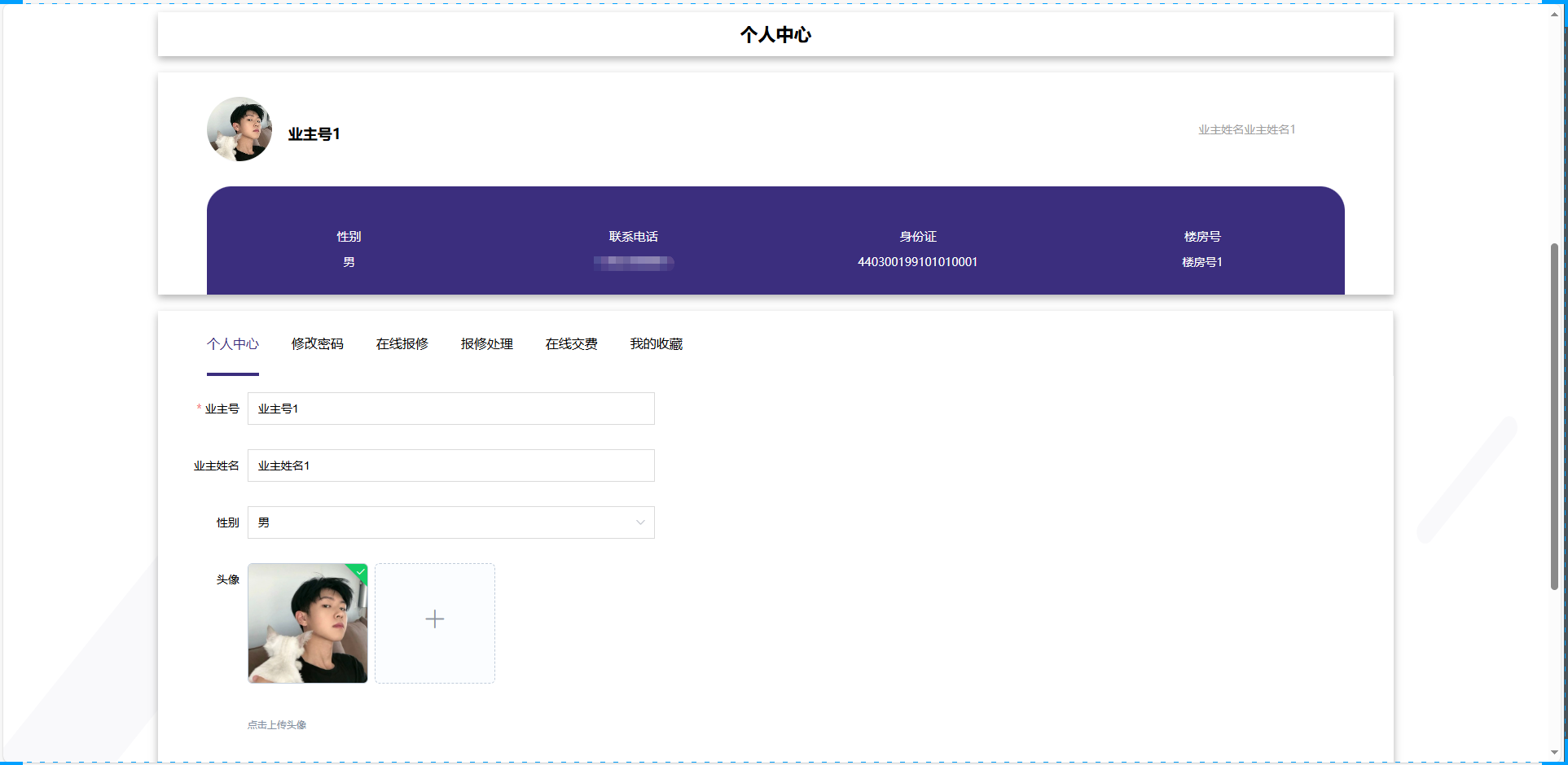 管理员拥有最高权限,负责整体系统的配置与数据监管;员工可处理日常物业服务事务,如报修响应、费用录入等;业主则可通过前端界面完成信息查询、在线缴费及服务申请,实现高效互动与便捷管理。