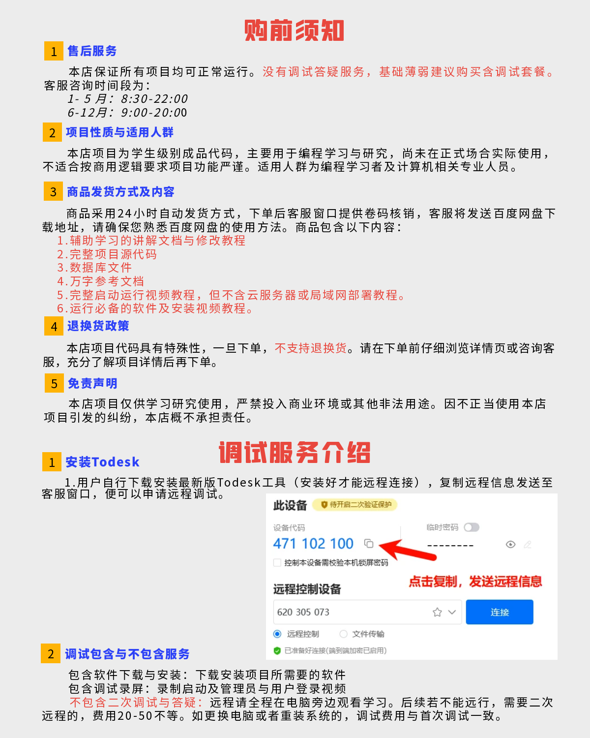 附赠高清视频形式的项目调试指导教程,逐步演示环境配置、代码运行、数据库连接等关键步骤,帮助用户快速上手。