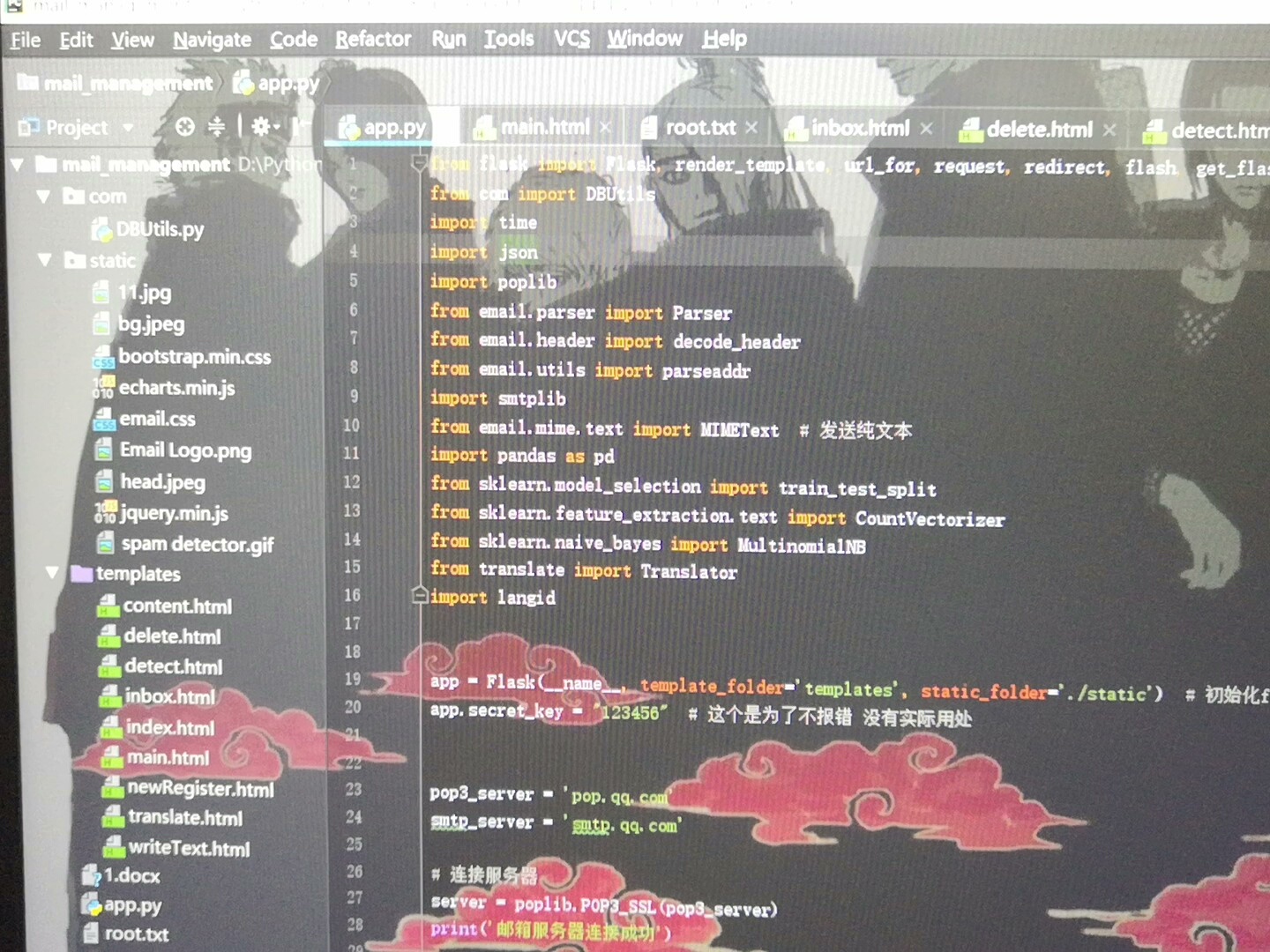 通过Flask提供的路由机制与请求处理能力,系统能够高效响应前端操作指令,并与邮件服务器建立稳定连接,确保数据传输的安全性与实时性。