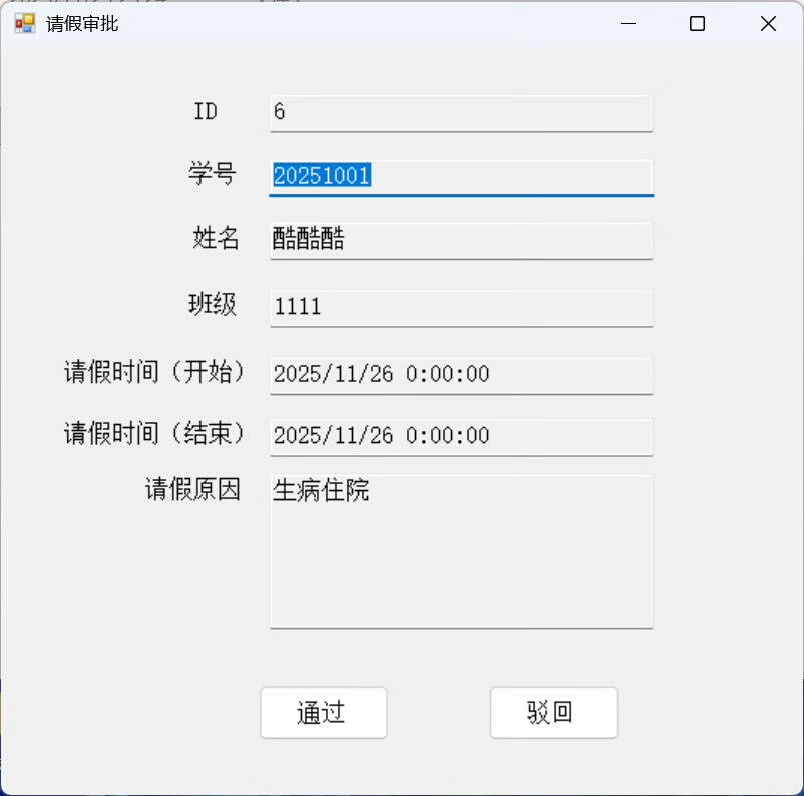 管理员可实时查看所有学生提交的请假申请,详细了解请假事由、时间范围等信息,并根据实际情况进行审核或批准操作,提升管理效率与响应速度。