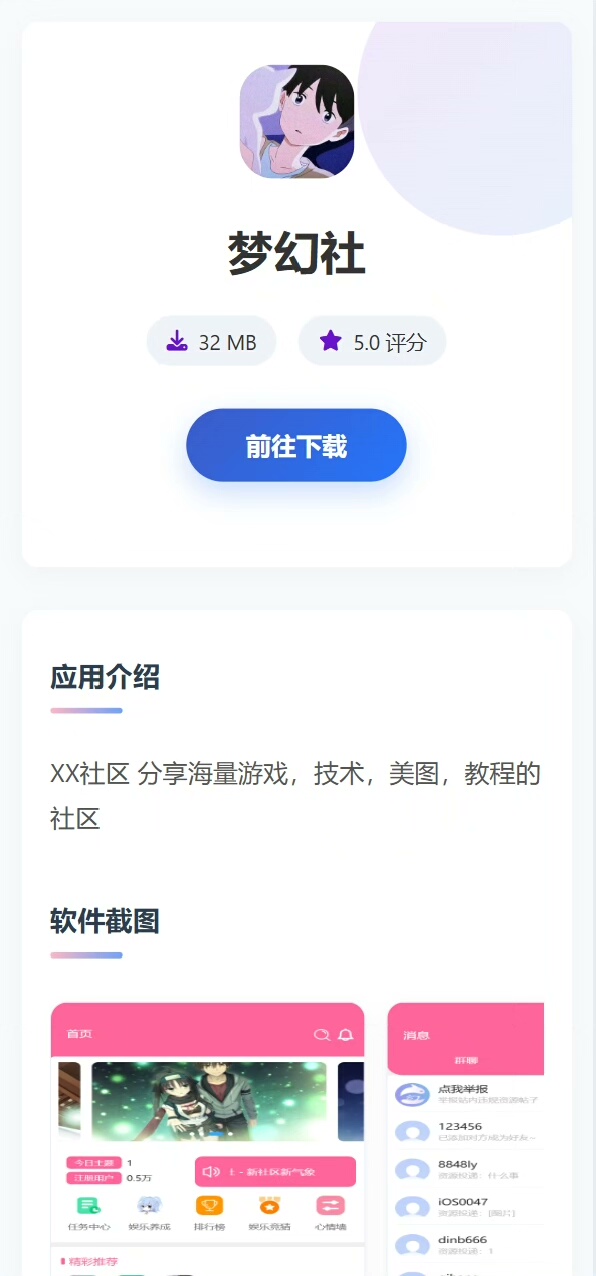 本资源为原创开发的App应用下载单页程序源代码,集成可视化后台操控系统,支持内容实时更新与数据管理。