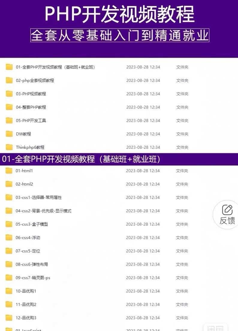 本课程包含完整的PHP开发学习资料包,涵盖实战项目案例、源码文件、学习笔记及配套练习题。