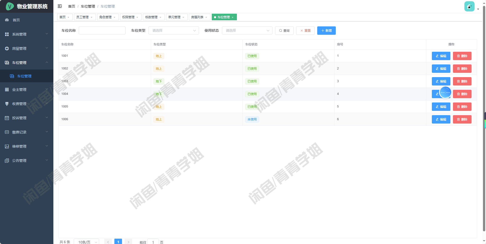 车位管理实现停车位的分配、租赁与使用监控。