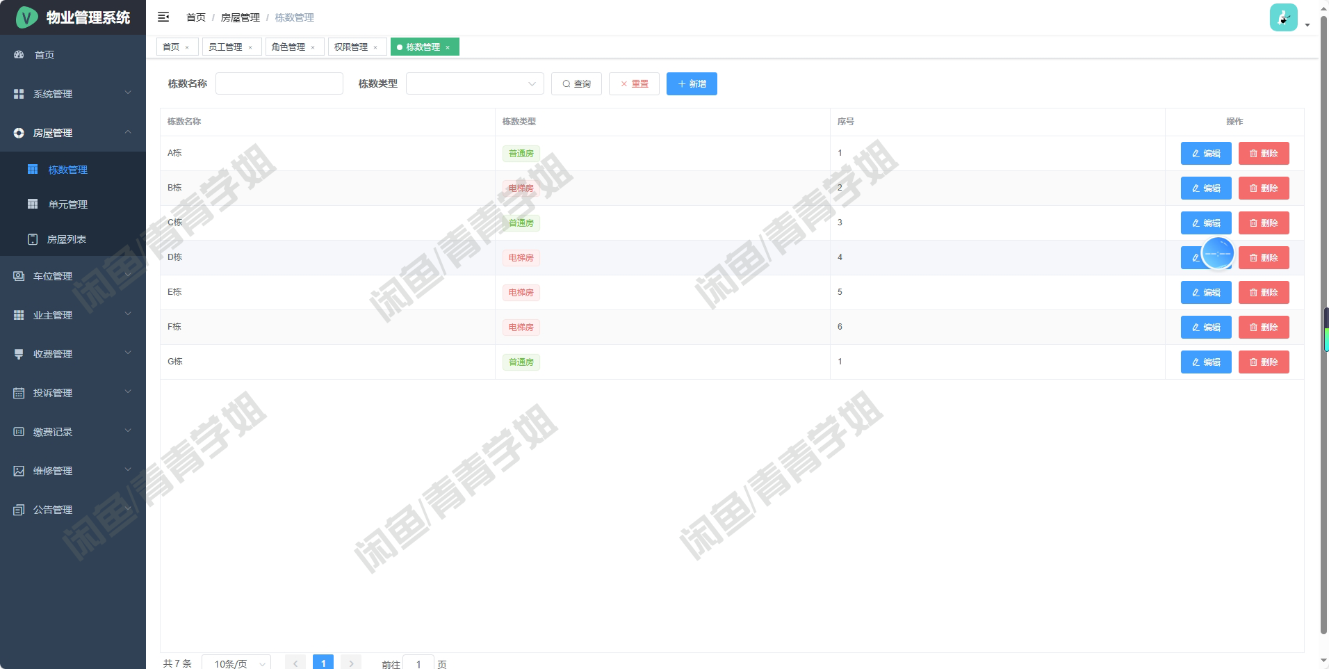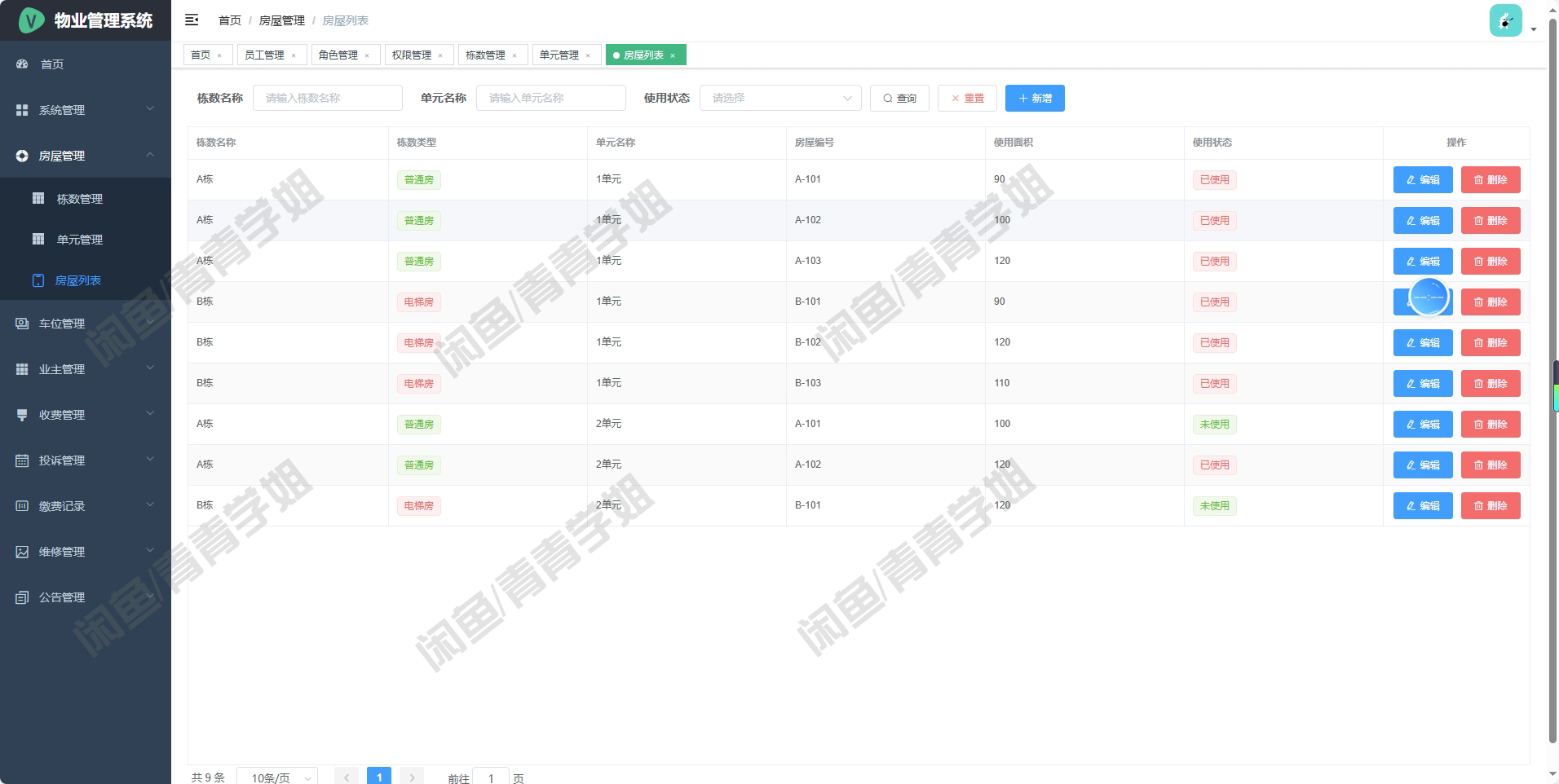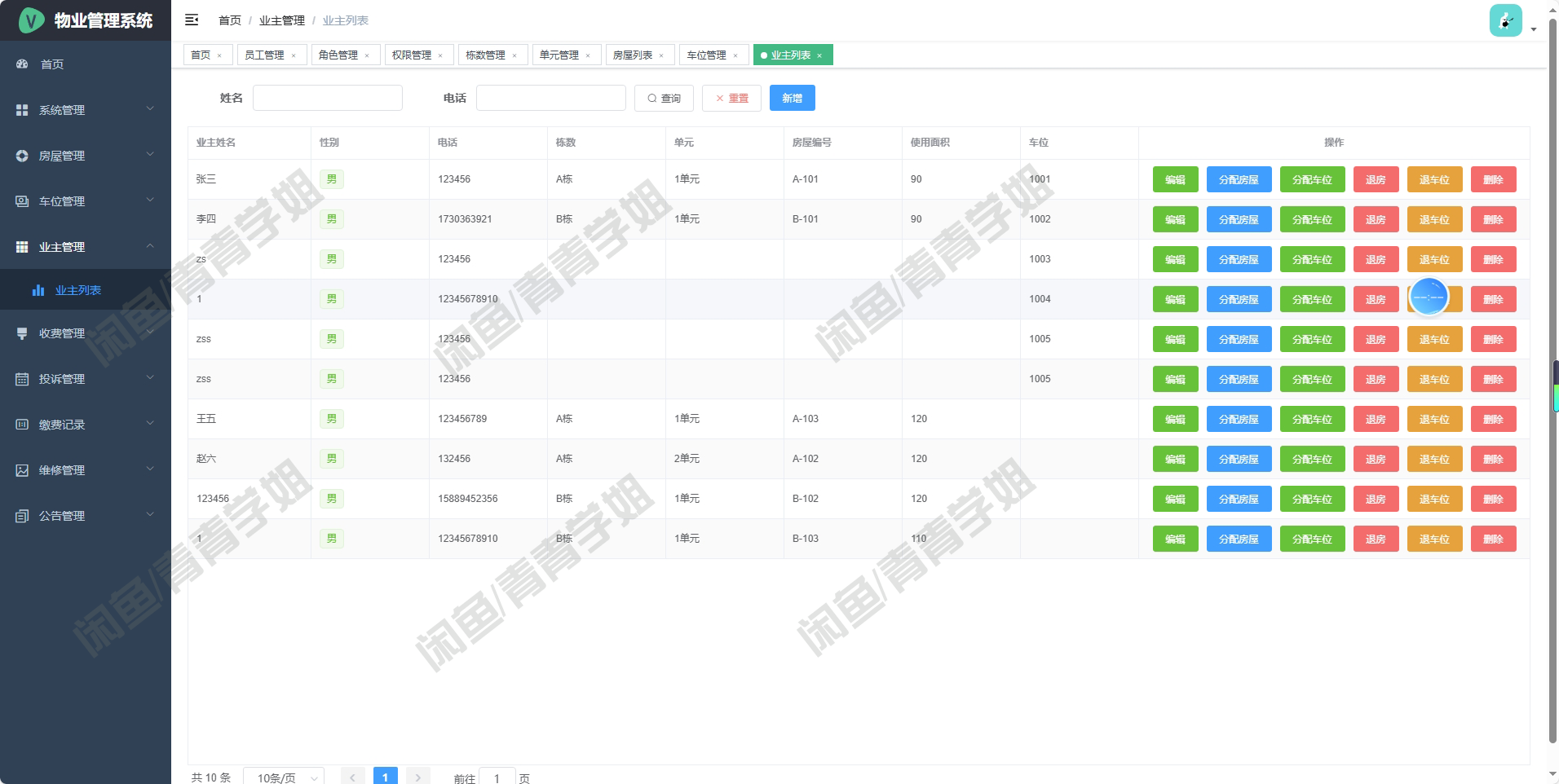 房屋管理记录每套房产的面积、入住状态等详细信息。