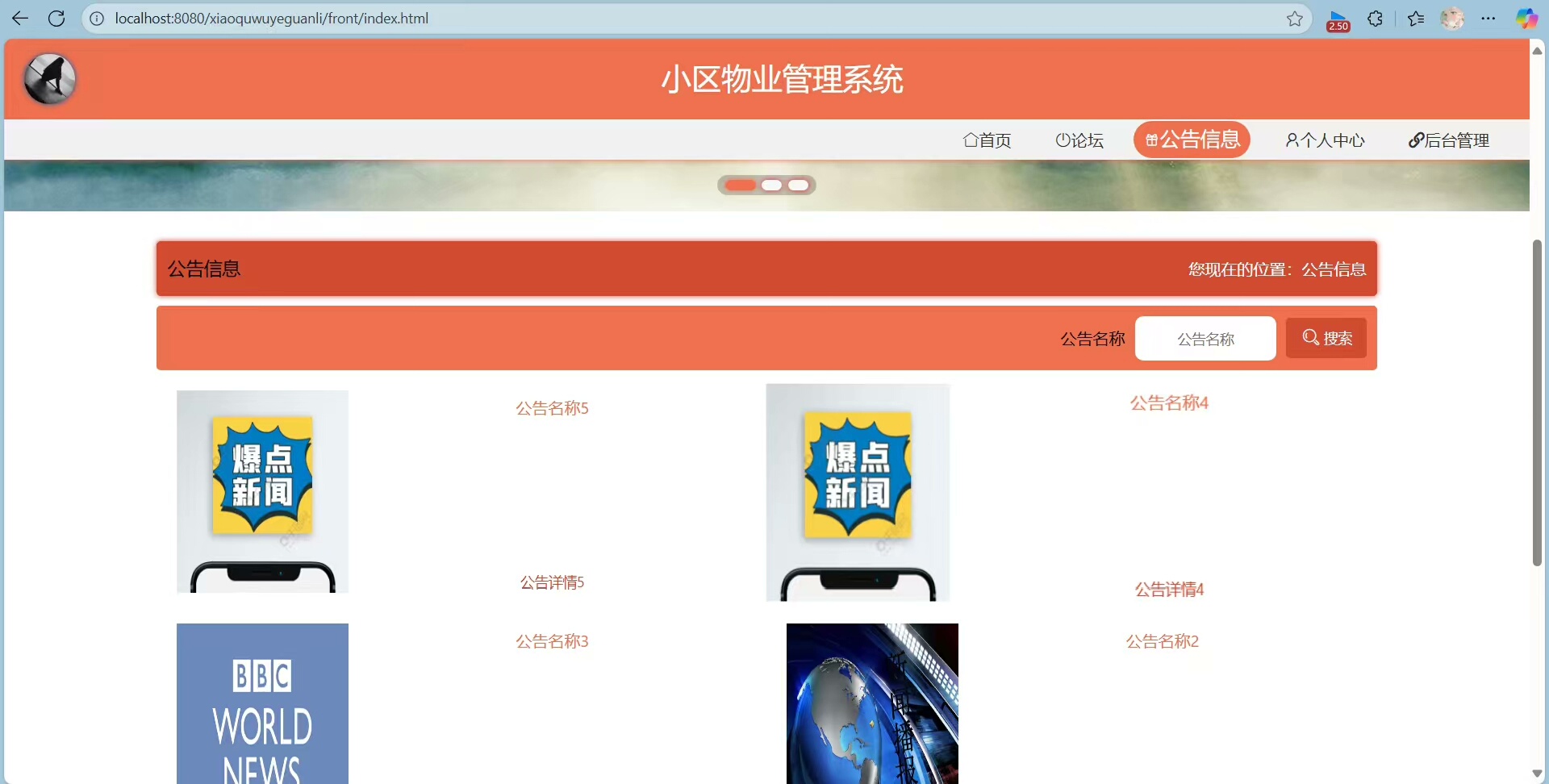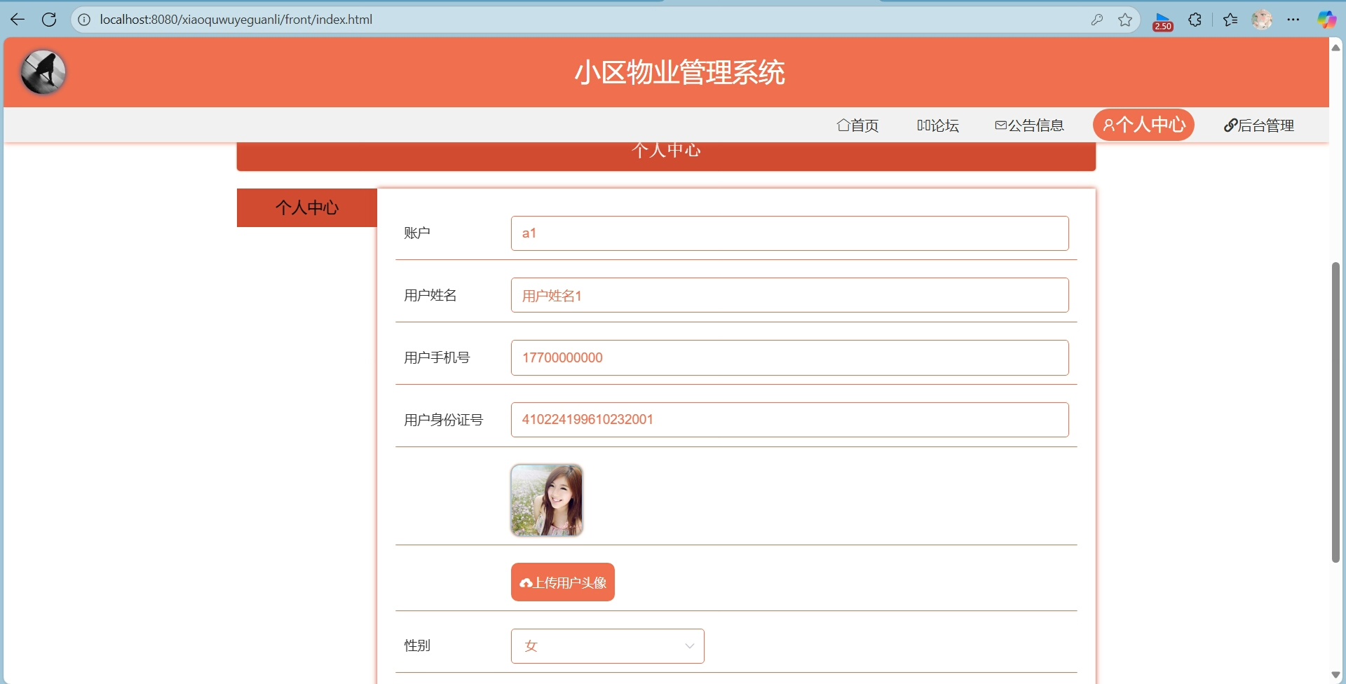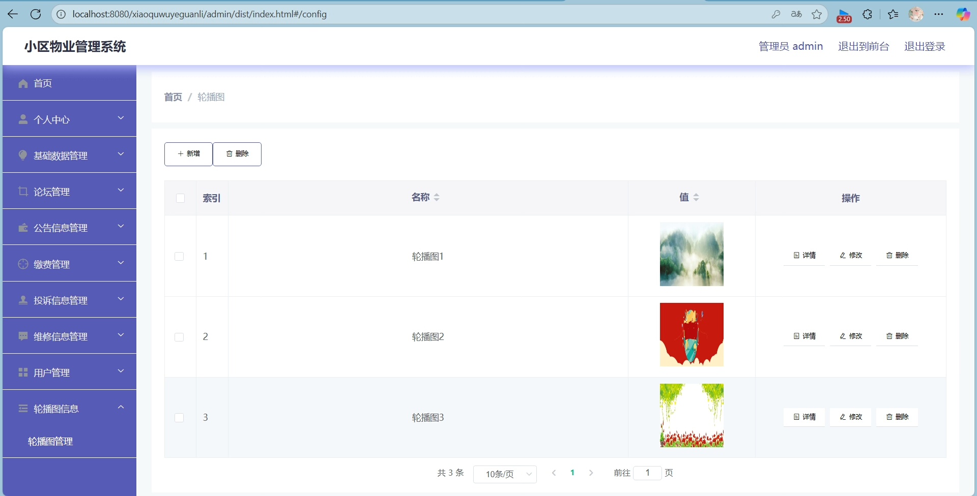 管理员可进入后台对所有数据进行增删改查操作,包括业主信息、安保记录、物业费用、公告通知等内容均可灵活编辑。