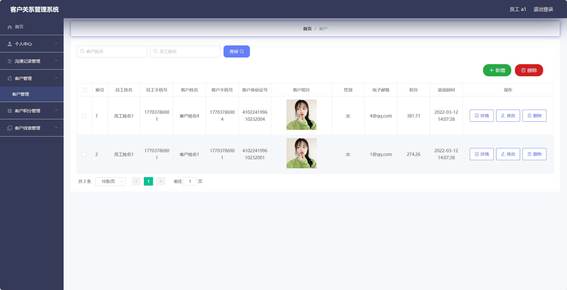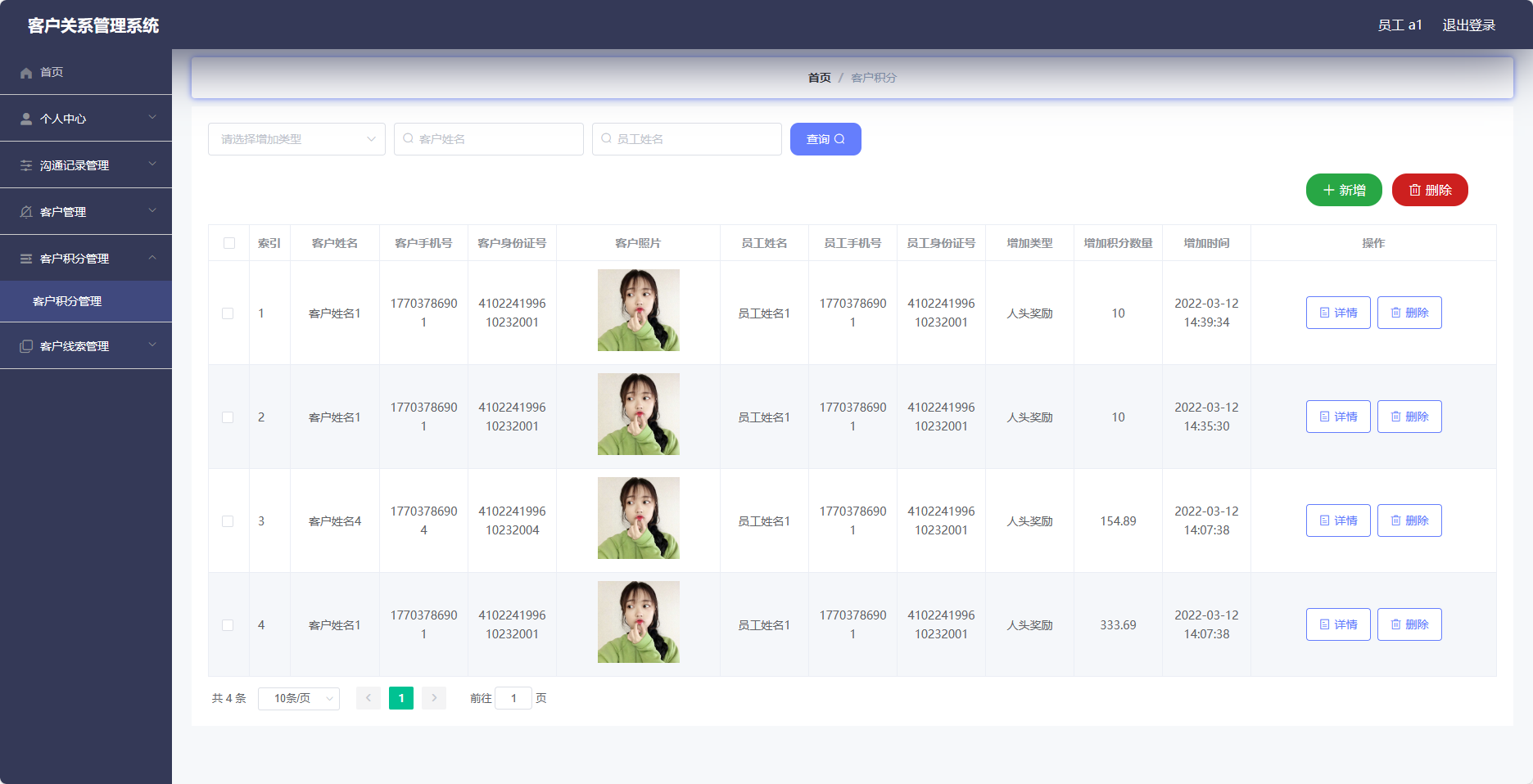 普通用户可在个人中心维护基本信息;查看并操作自己名下的客户信息;记录与客户的沟通详情;管理客户积分兑换与调整;跟踪客户线索进展,提升客户服务响应效率。