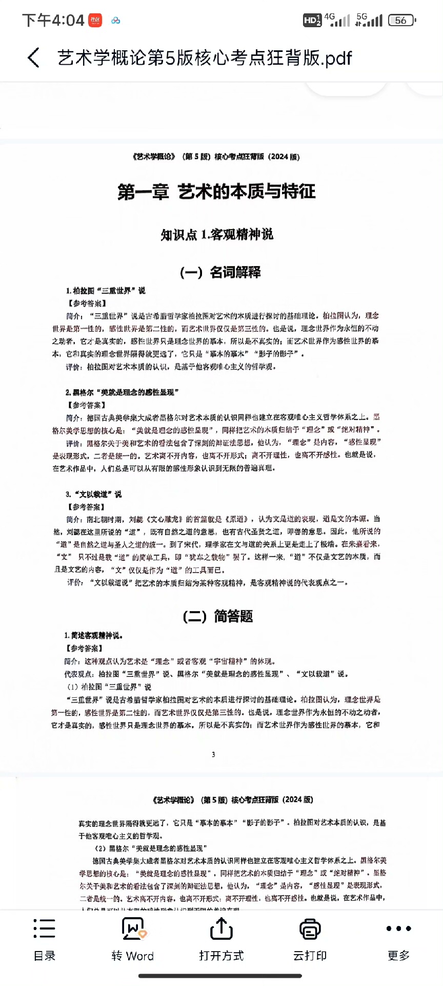 如果你正在寻找一份条理清晰、重点突出、便于背诵的艺术学复习资料,不要再犹豫!点击“我想要”并私聊我,即可获得这份《艺术学概论》第五版核心考点速记版,开启你的高效备考之旅。