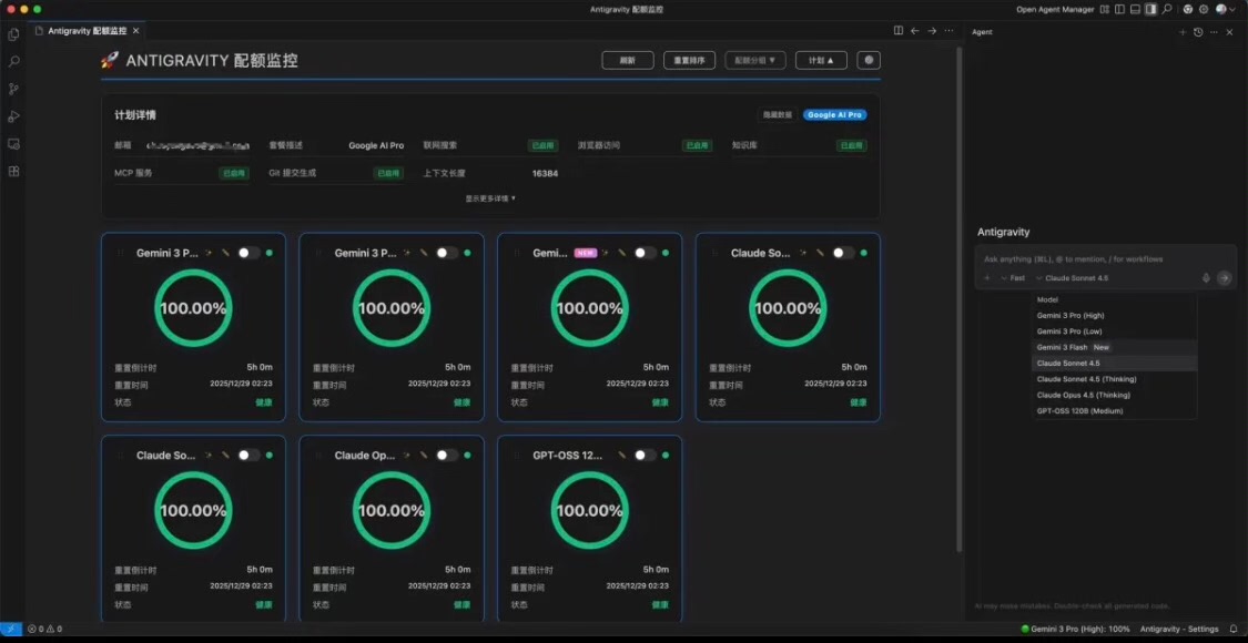 需提前安装Antigravity客户端方可使用。